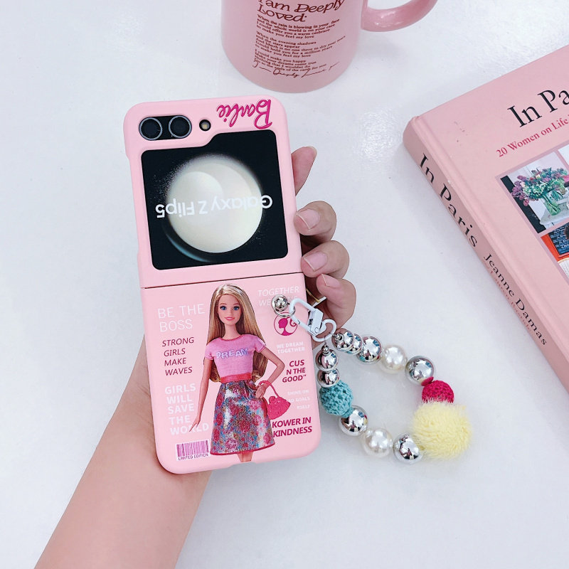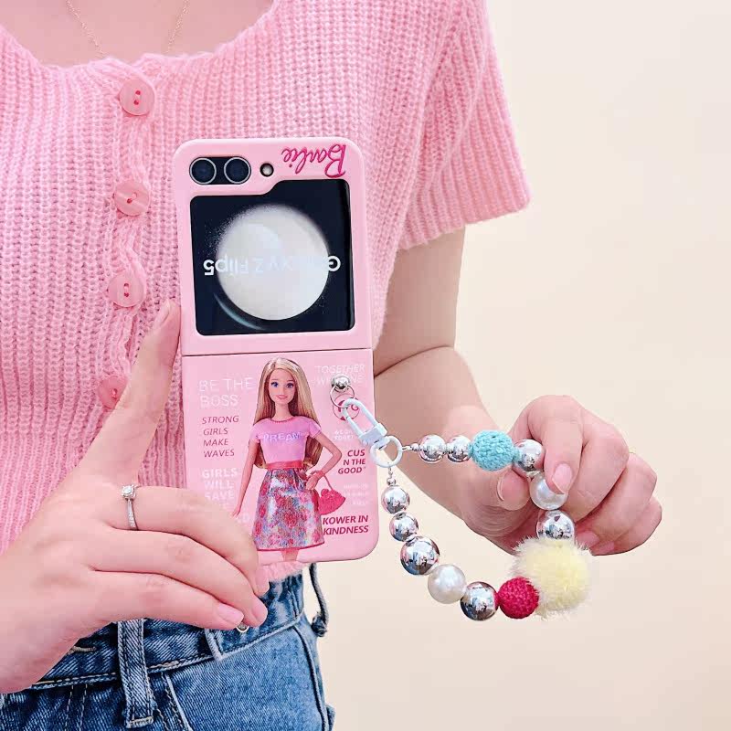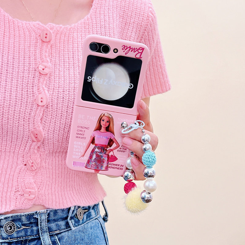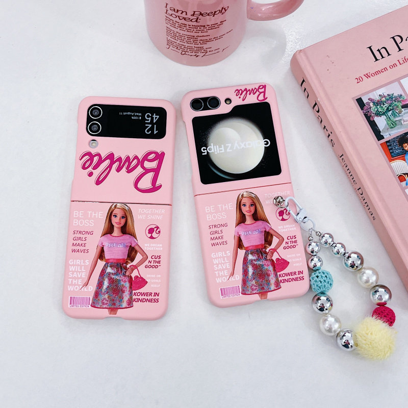 ins日韩卡通芭比娃娃适用于Galaxy三星Zflip5手机壳新款创意zflip4折叠屏zflip3防摔w23flip手链保护套少女款
