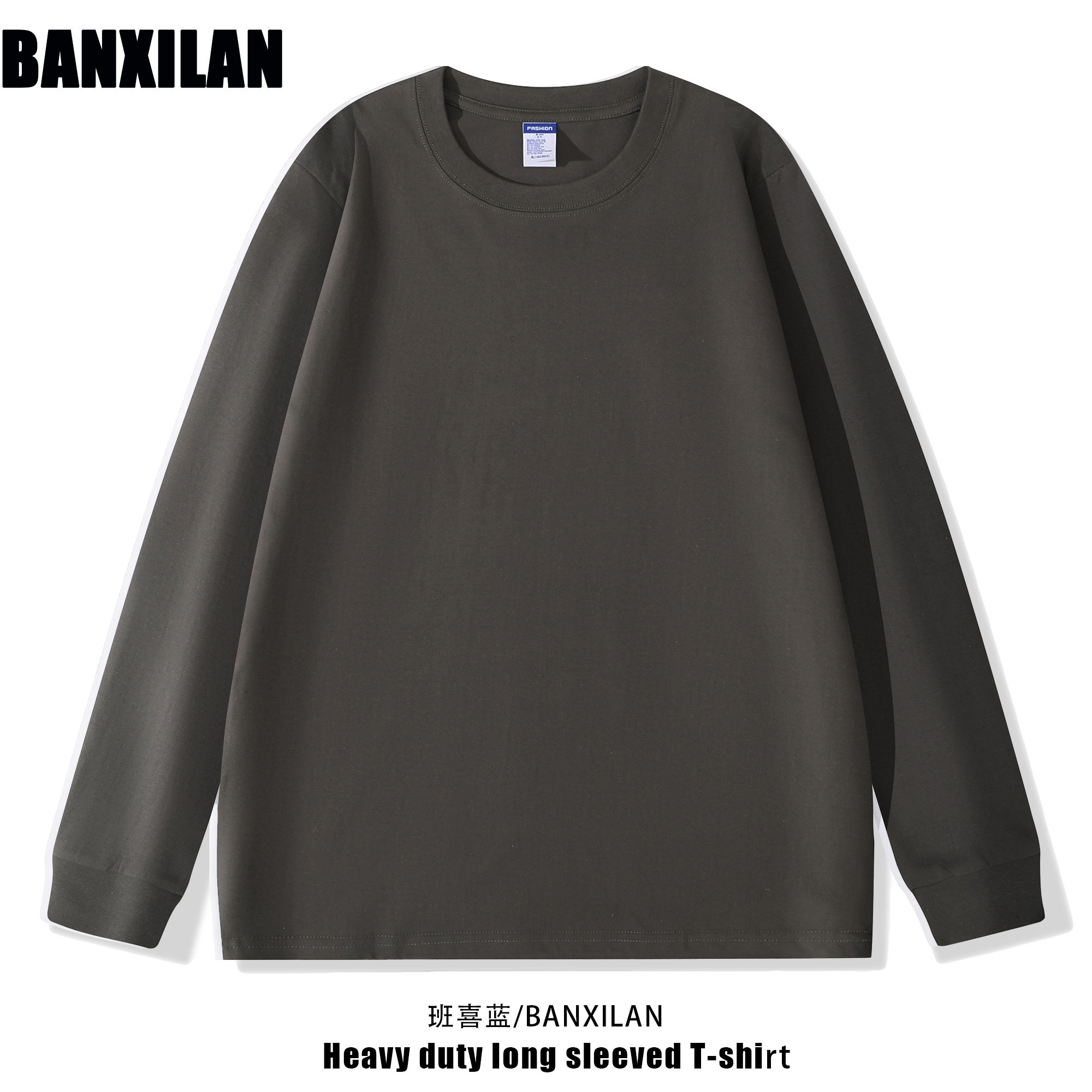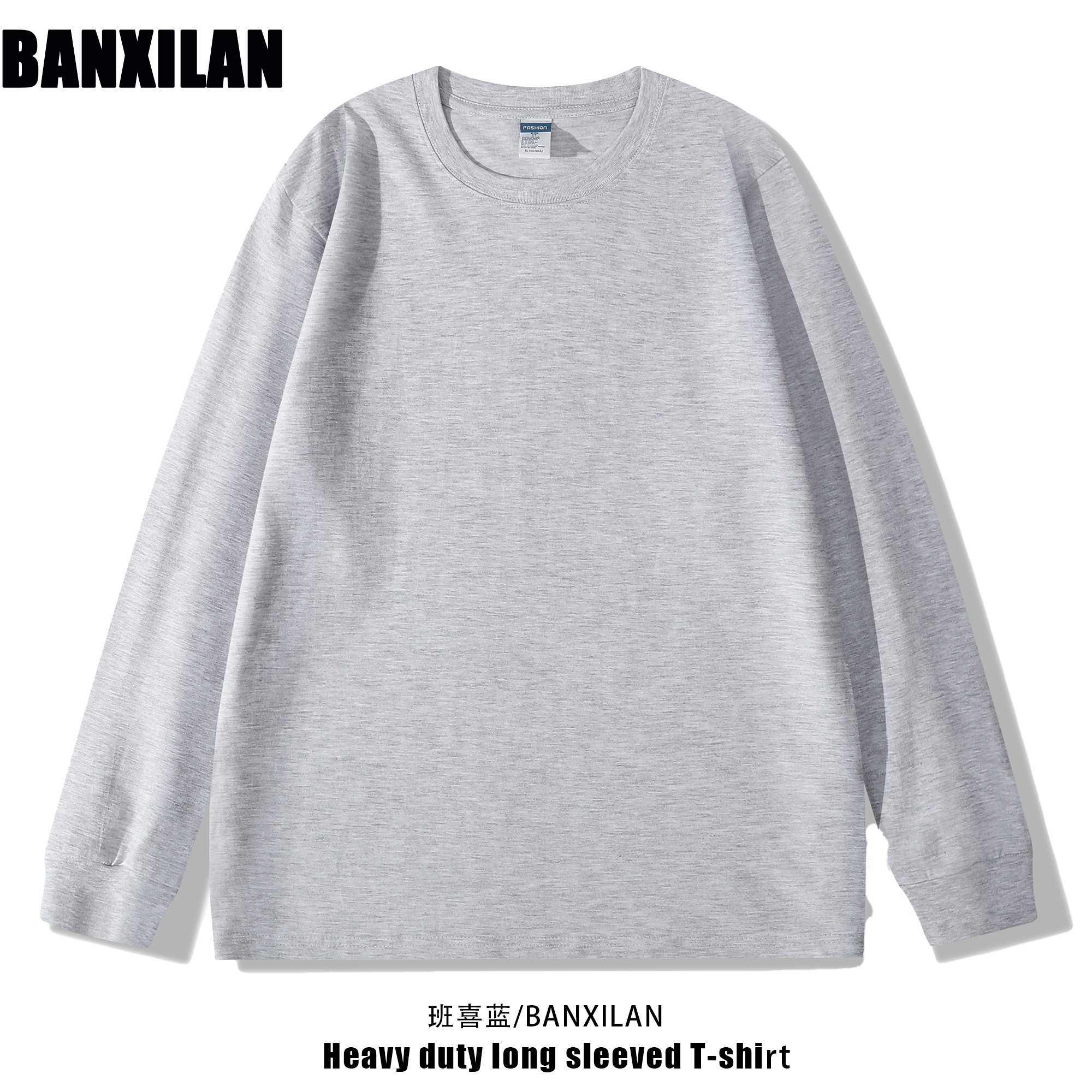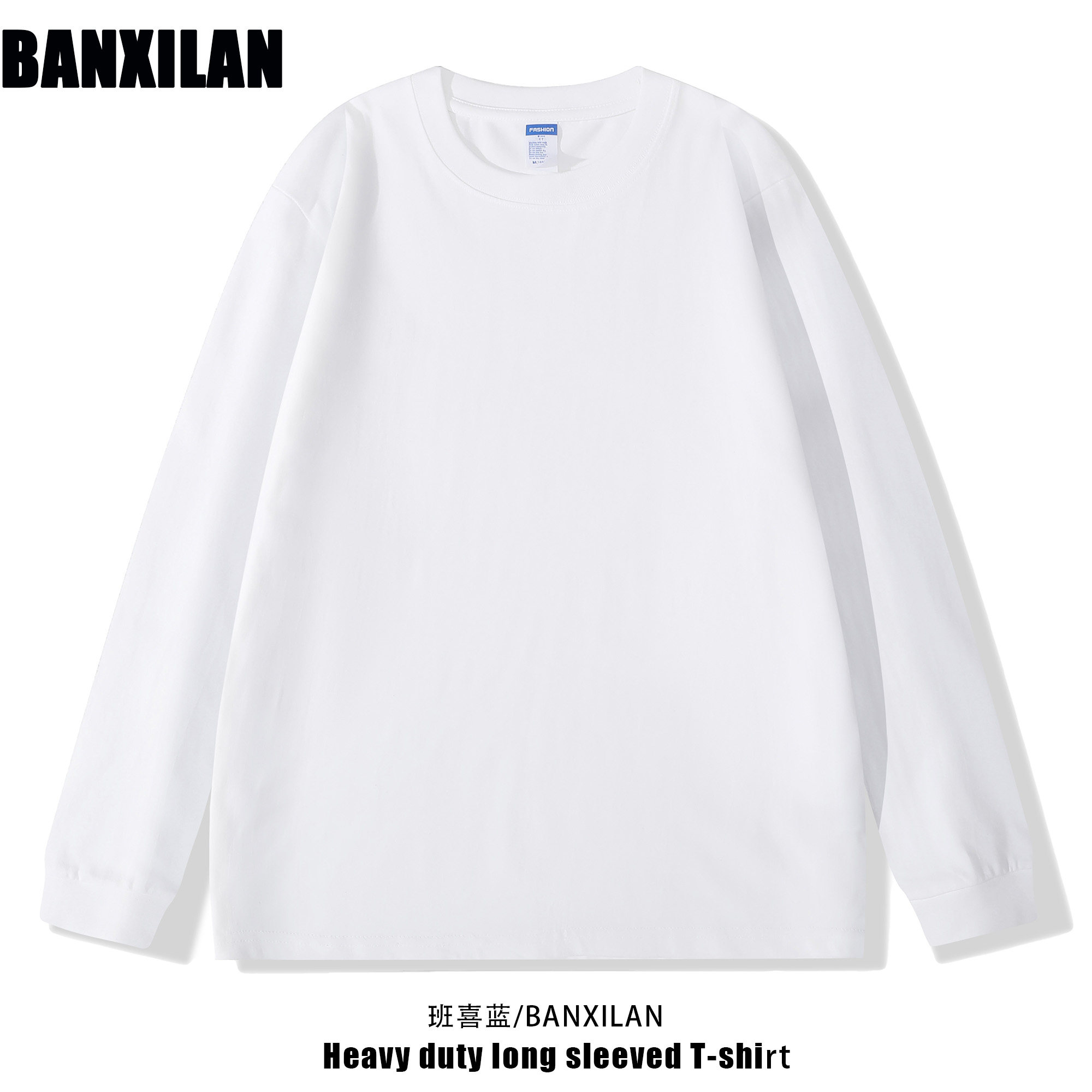 BANXILAN美式潮牌重磅纯棉长袖T恤男女百搭宽松纯色上衣打底衫