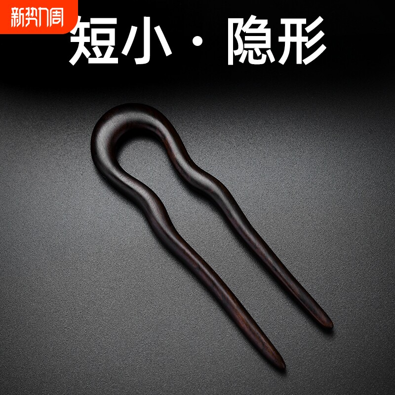 短小发簪U型黑檀木新中式盘发木簪簪子日常通勤发钗叉U形发插钗子