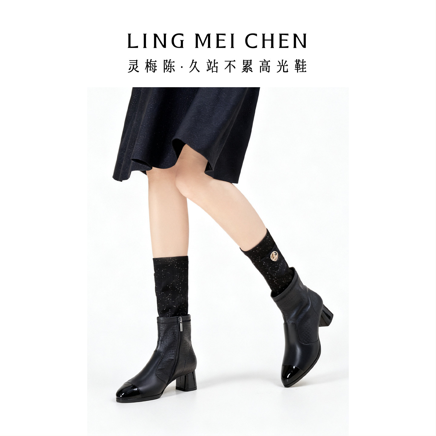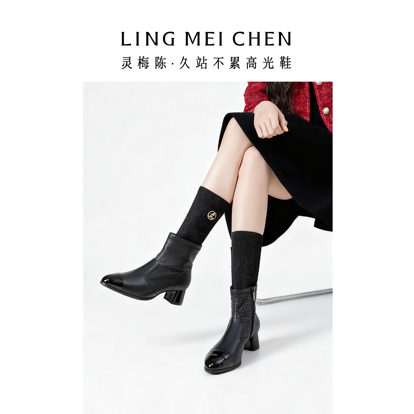 LINGMEICHEN袜靴多穿弹力瘦瘦靴2025新款英伦风针织短靴粗跟女鞋