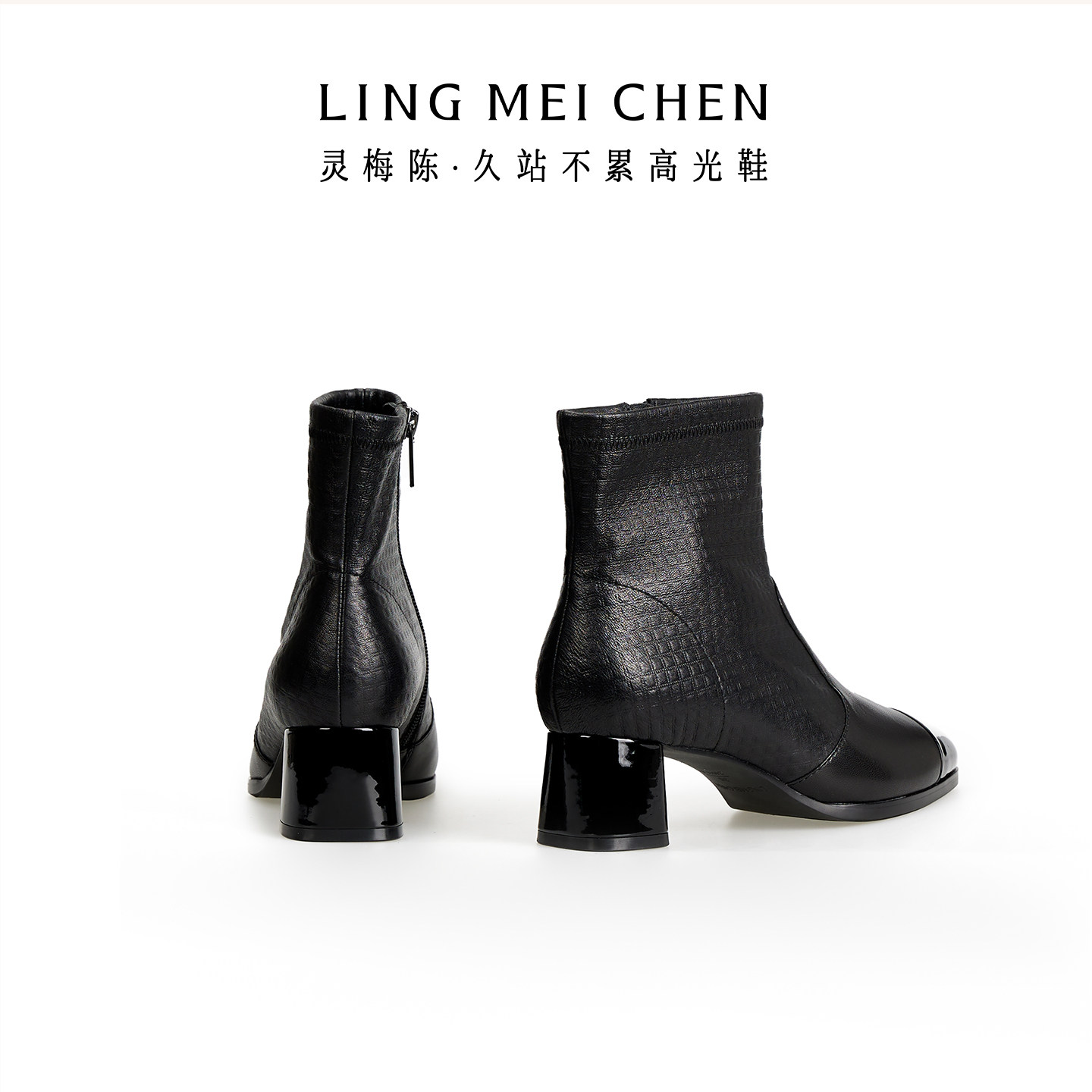 现韩国东大门2022ins简约气质小方头侧拉链小猫跟瘦瘦弹力短靴子