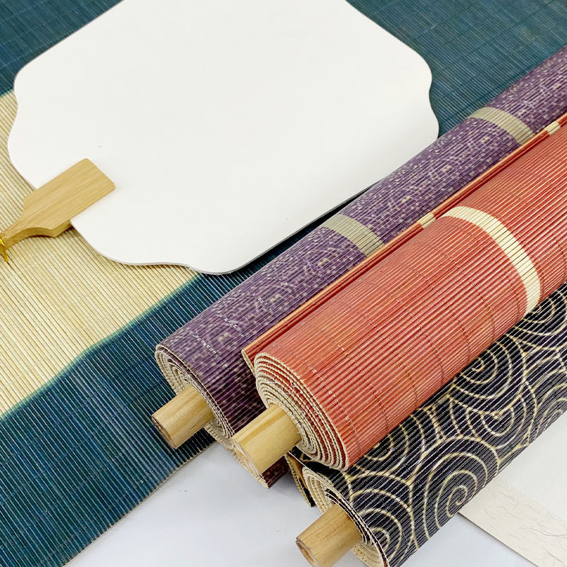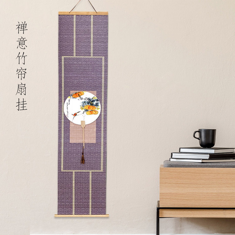 禅意竹帘扇挂卷轴中式团扇如意扇宫扇真丝绢扇工笔画diy挂屏展示架书画挂轴立轴