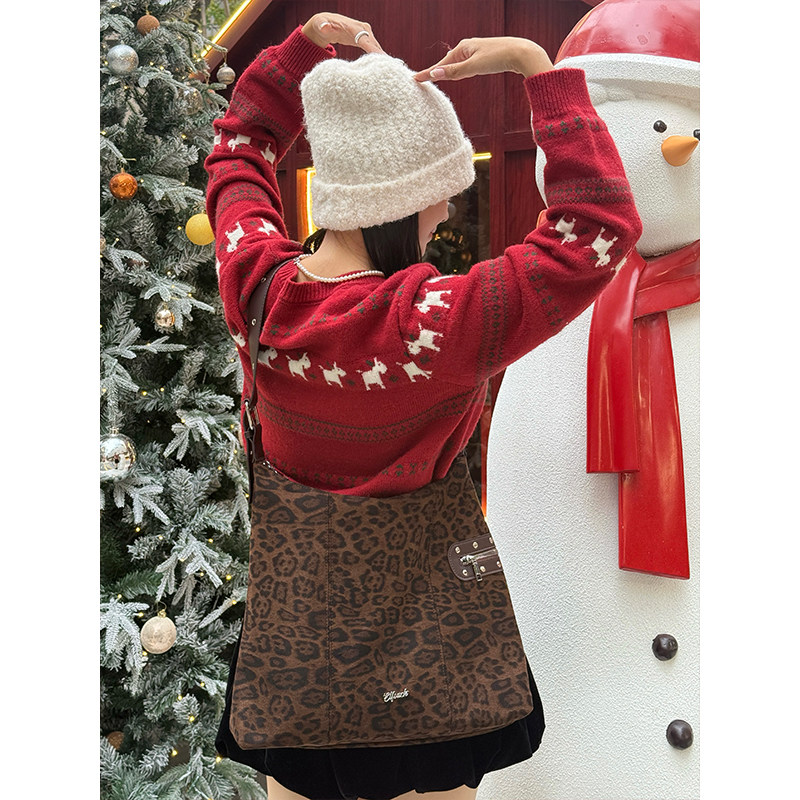 妖精的口袋韩系复古豹纹单肩包女2025年大容量通勤休闲百搭斜挎包