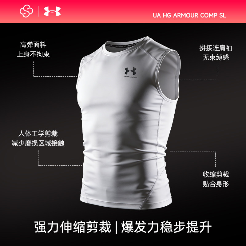 UA安德玛速干背心男士无袖T恤夏季新款运动服压缩训练紧身衣