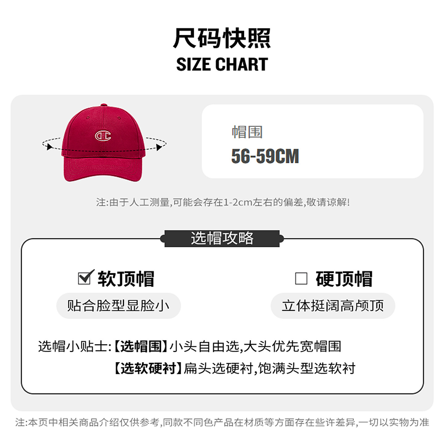 酒红色大头围帽子棒球帽大脸显脸小宽帽檐女加大加深顶红色鸭舌帽