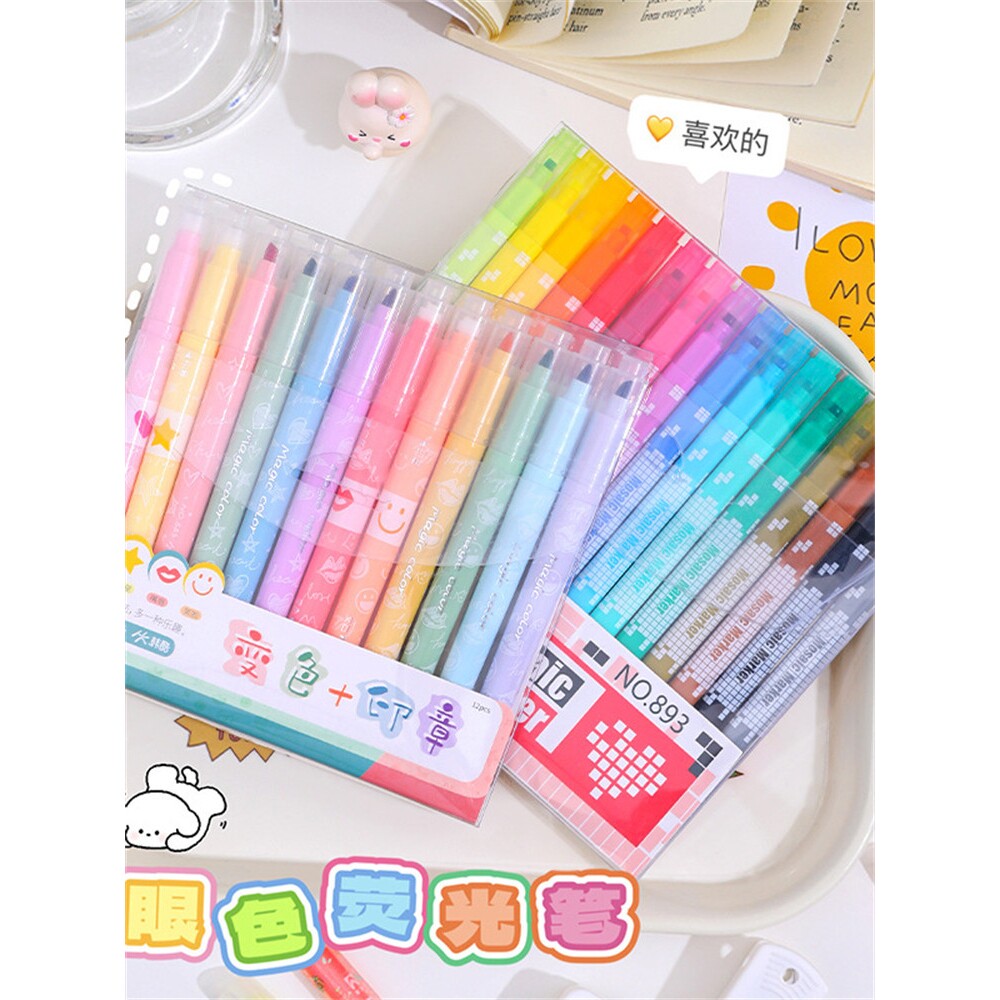晨光魔法手账笔消色笔荧光笔可叠色双头记号笔手账绘画标记划重点高颜值彩色笔大容量学生用做笔记手抄报速干