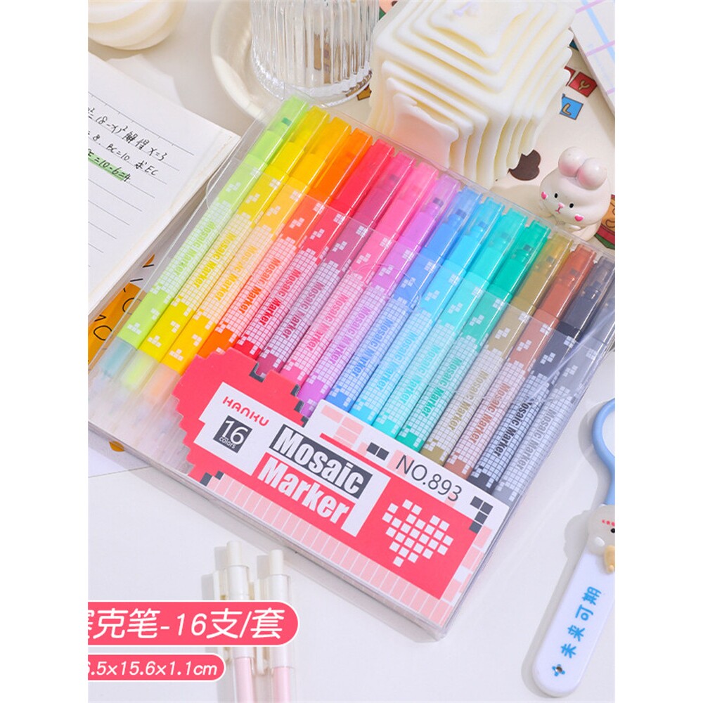 马赛克方头荧光笔手绘像素画糖果色记号笔绘画手帐笔高颜值ins风