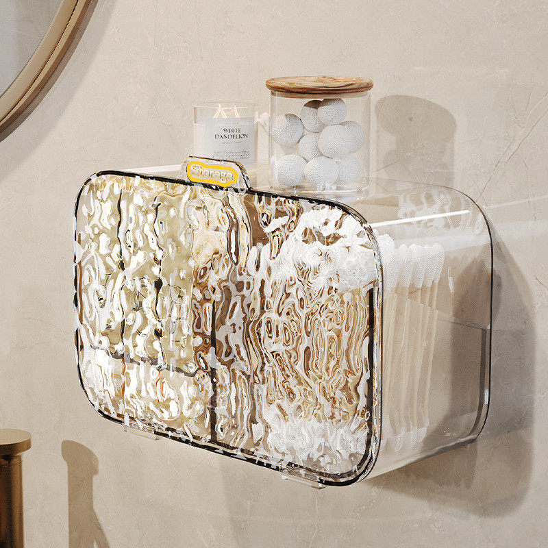 透明壁挂防尘分隔化妆棉收纳盒浴室棉签口红皮筋多功能整理
