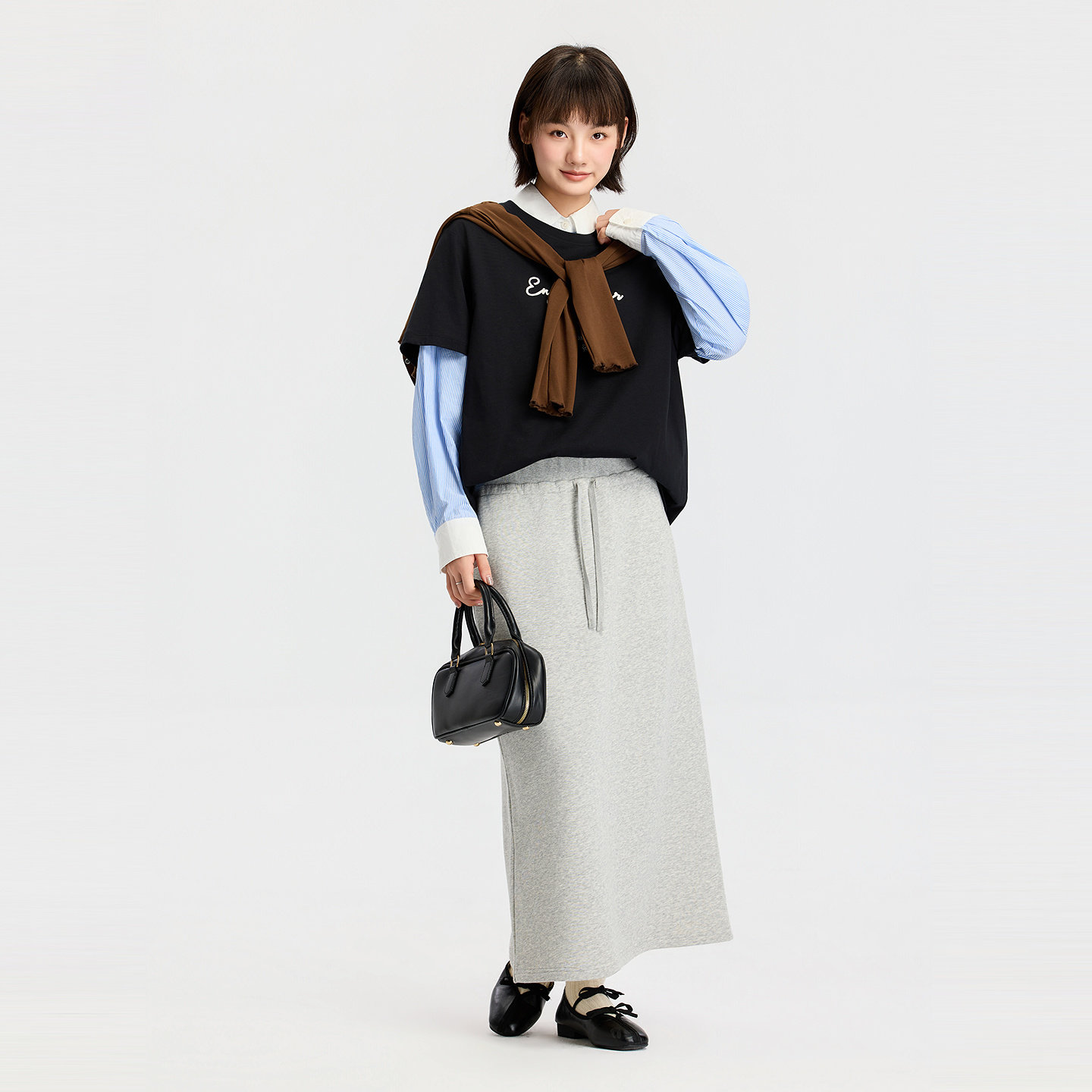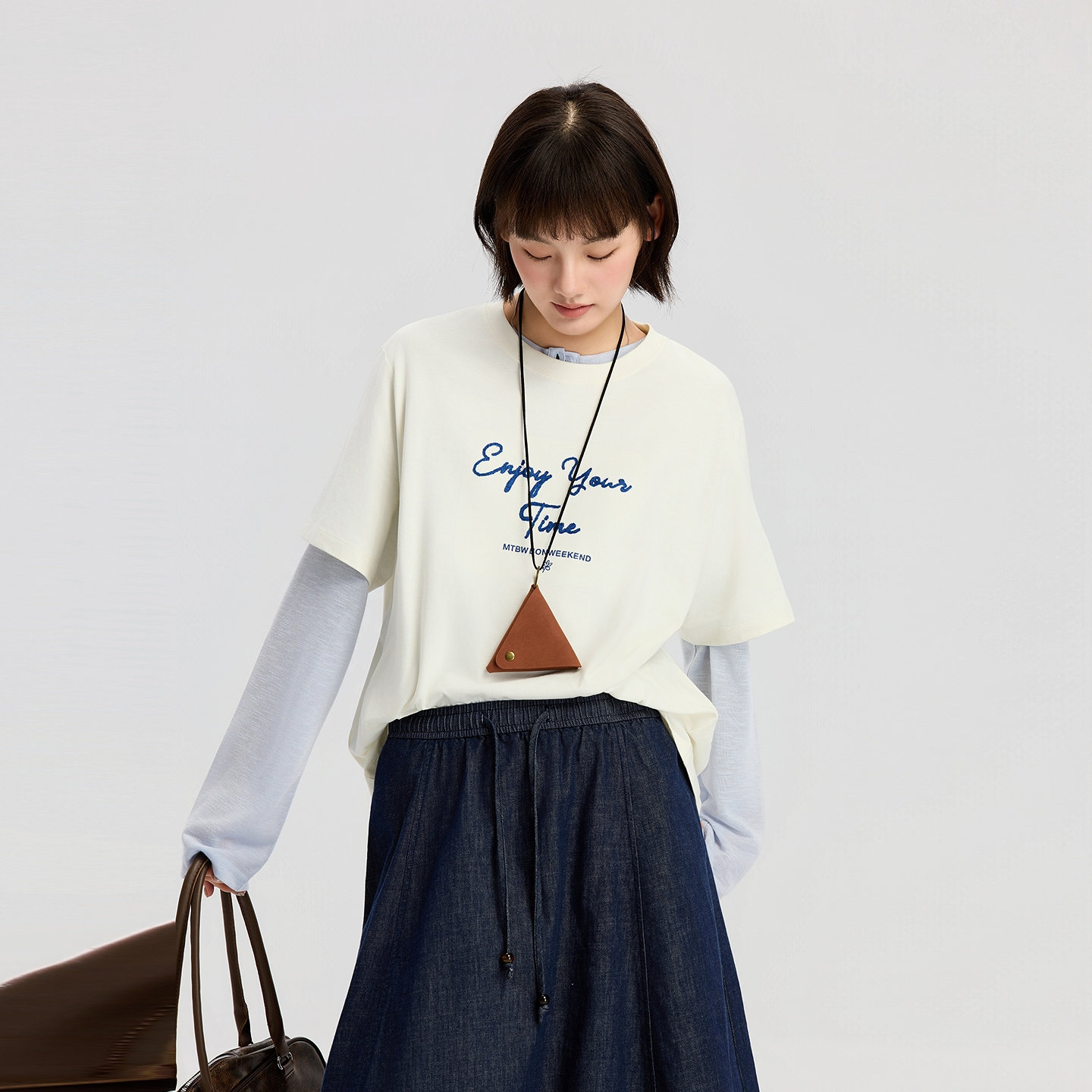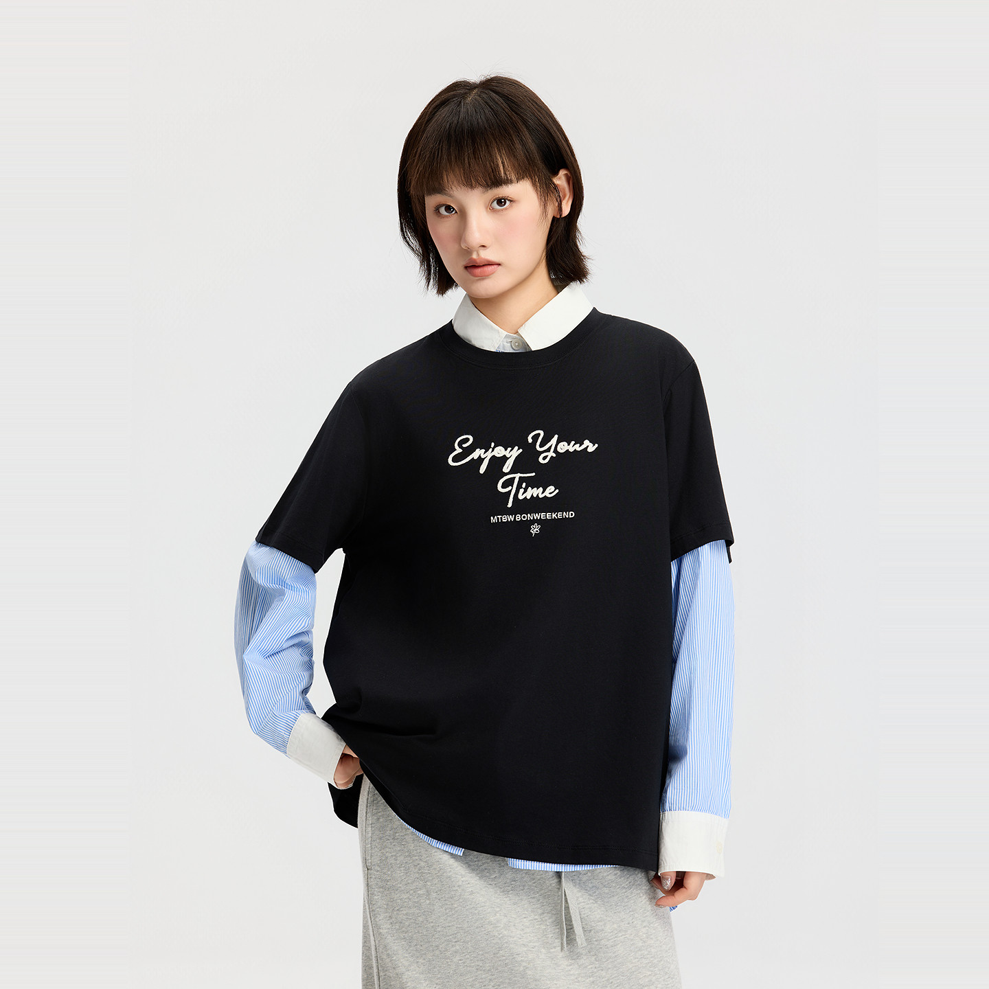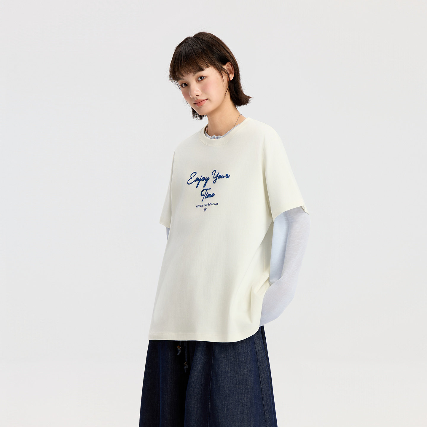 美特斯邦威T恤女2026春季新款时尚潮流立体字母绣花圆领短袖体恤