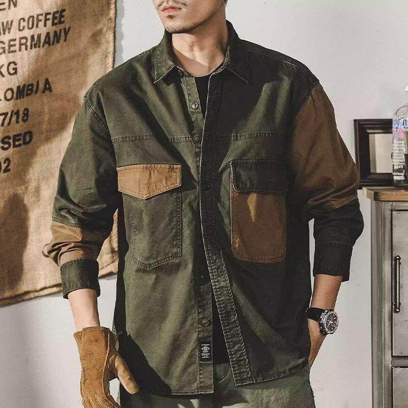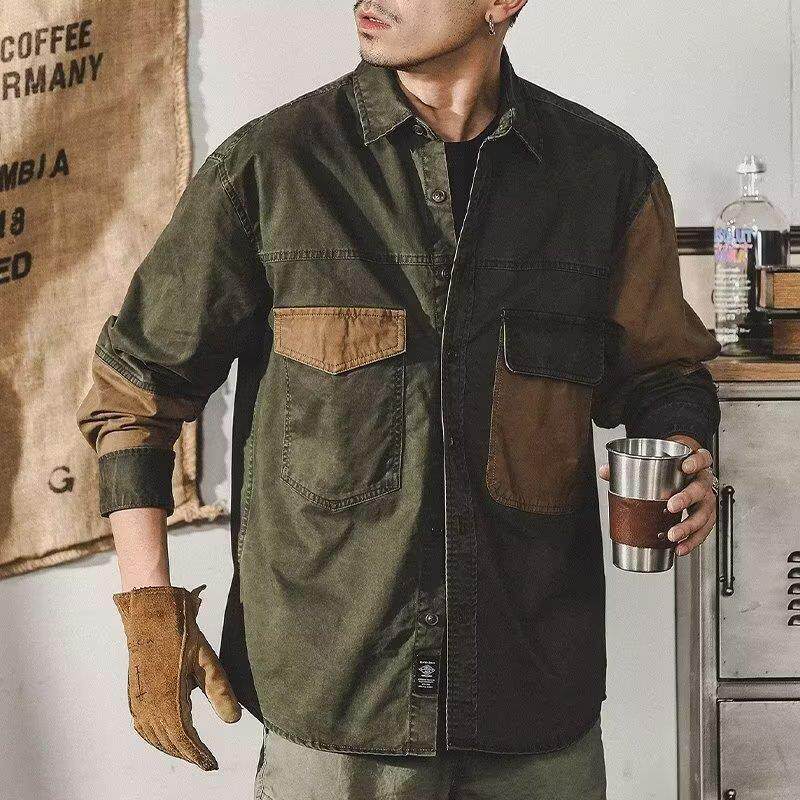 2026年春秋季美式工装复古长袖衬衫男春秋宽松休闲潮牌夹克外套男
