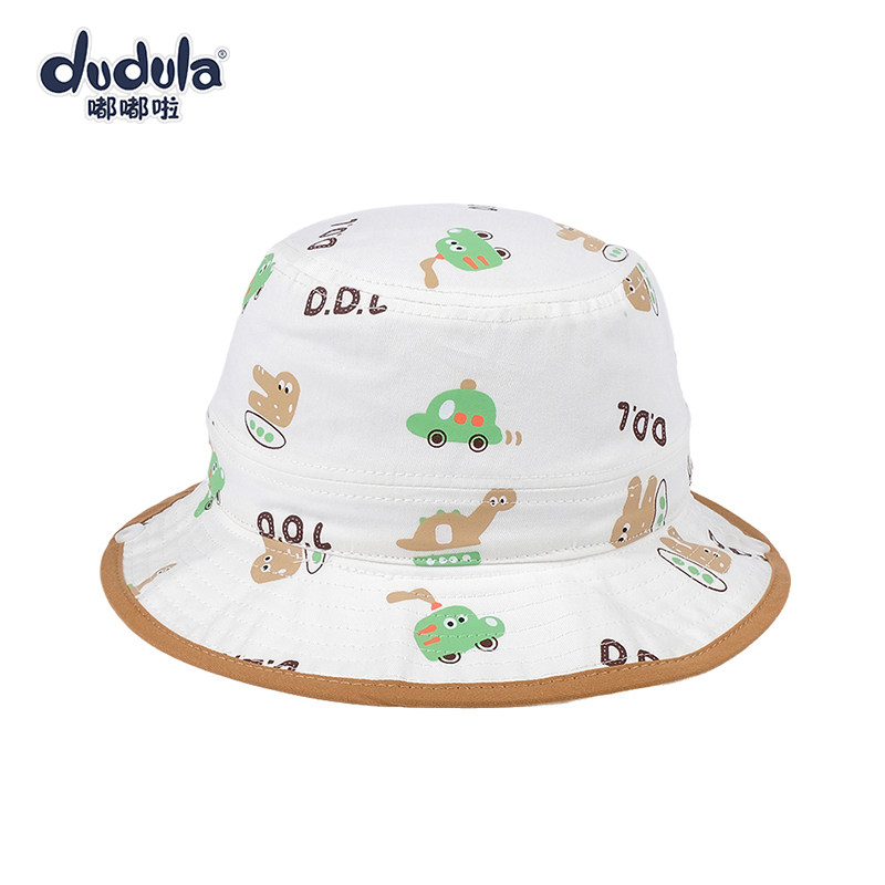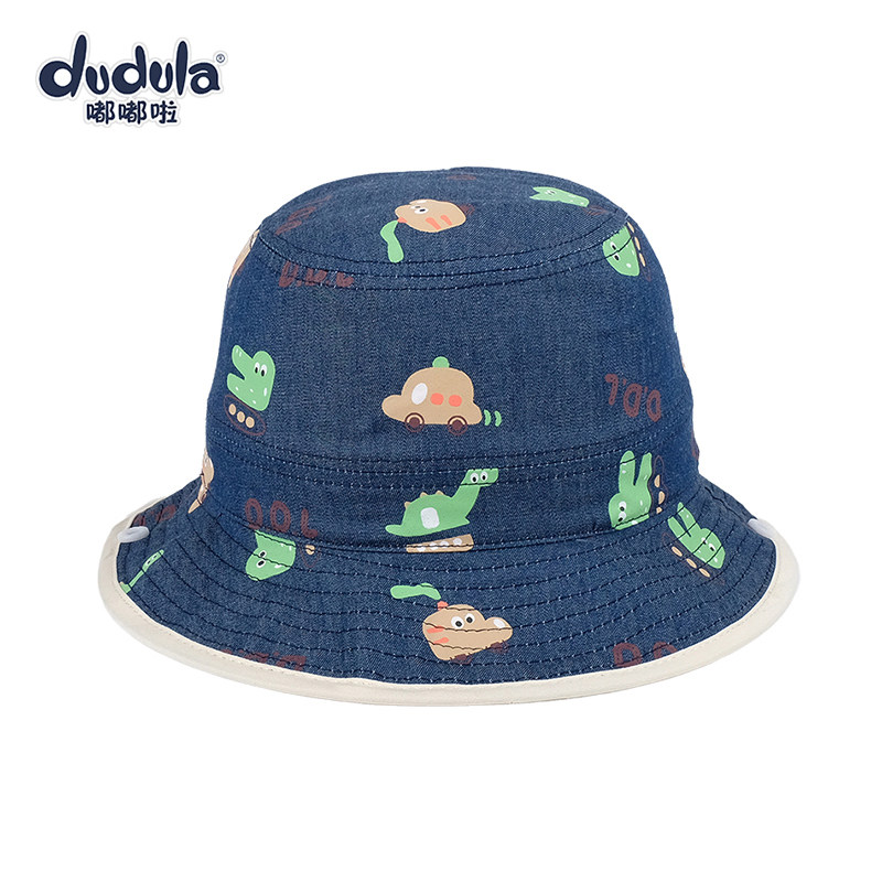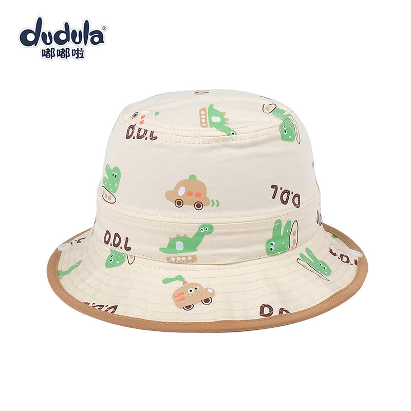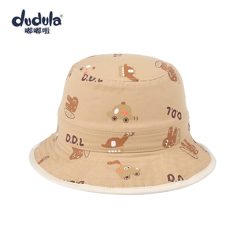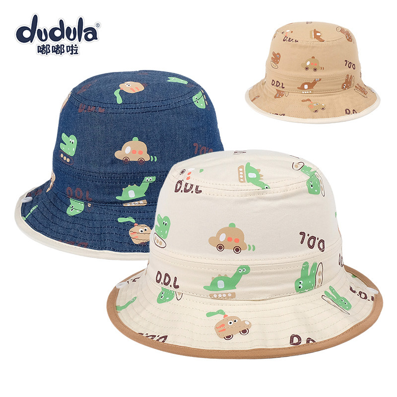嘟嘟啦儿童遮阳帽春秋薄渔夫帽大檐防风女男宝宝盆帽休闲平顶帽子