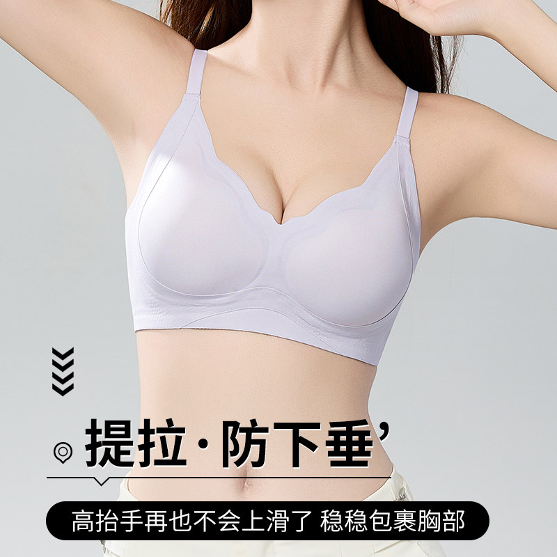 内衣女小胸聚拢收副乳提拉防下垂不空杯无钢圈塑形无痕文胸罩紫色