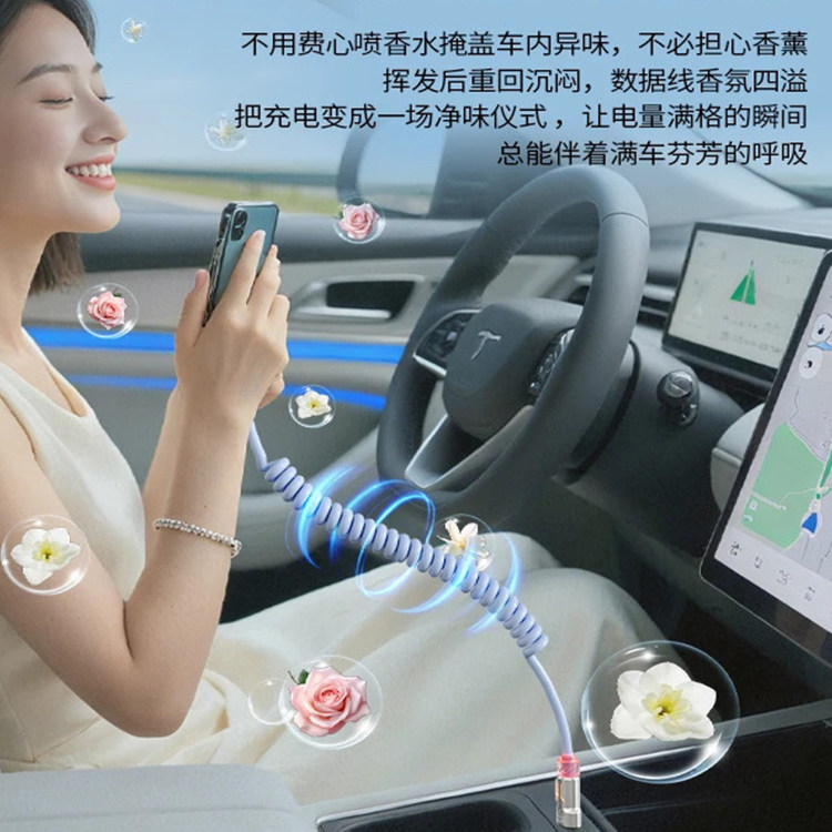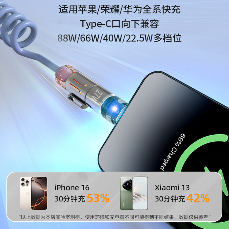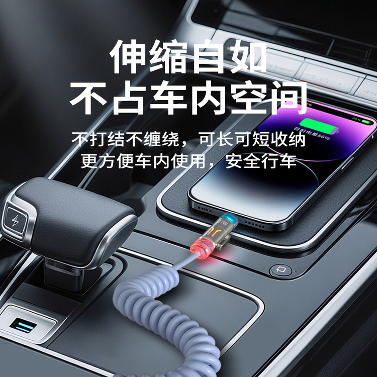 适用于240W车载投屏快充车载投屏carplay充电数据线四合一弹簧线导航互联苹果快充线 可开发票
