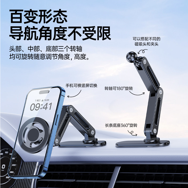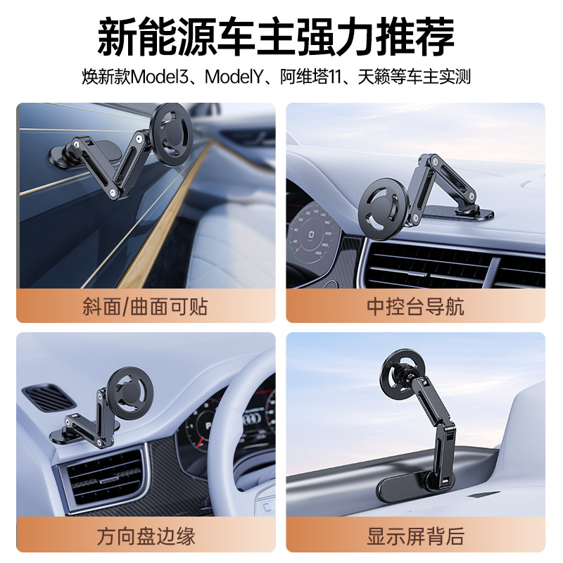 真空吸附磁吸车载手机支架2025新款吸盘车内导航手机架magsafe无线磁吸伸缩折叠便携架子墙壁通用神器