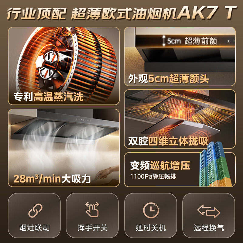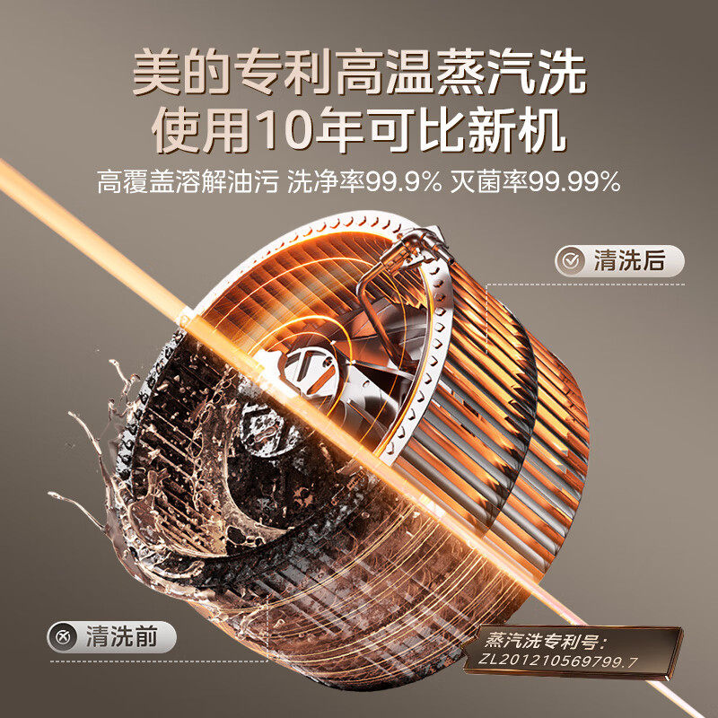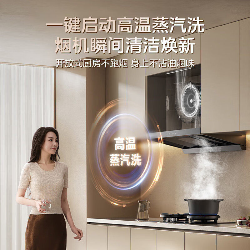 美的欧式顶吸式抽油烟机28立方大吸力变频自清洗排吸AK7T智能联动