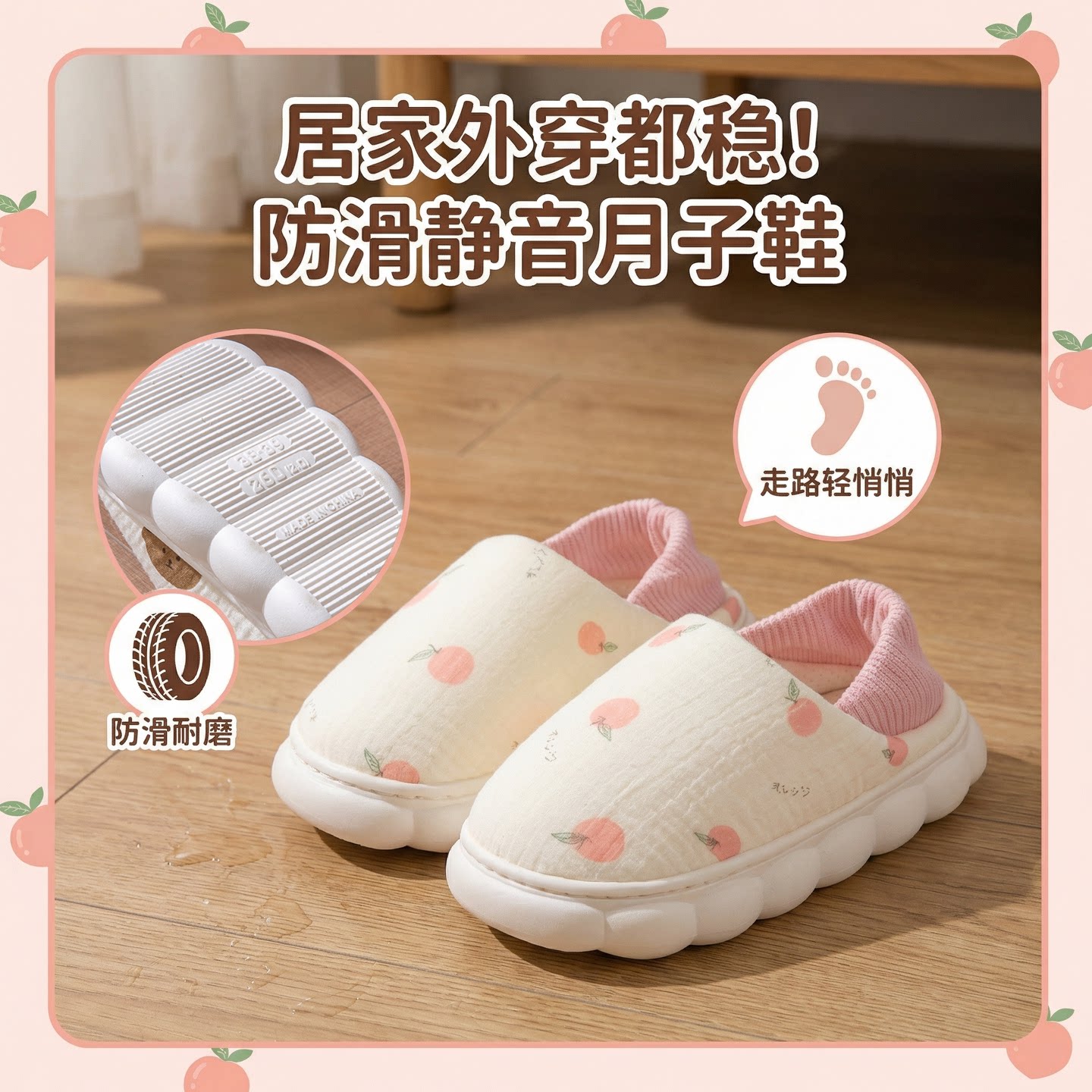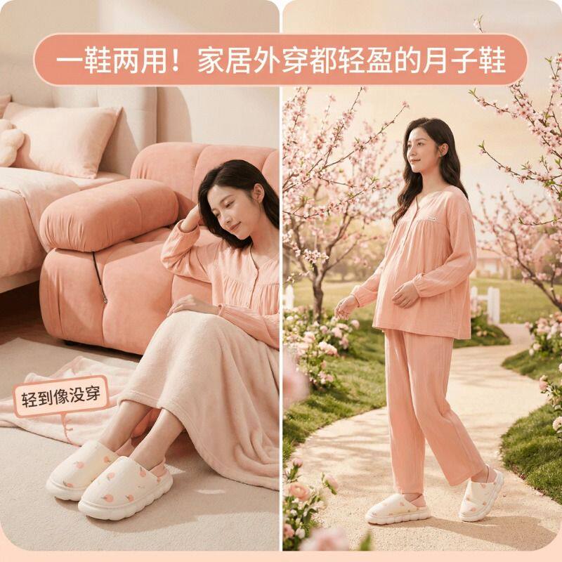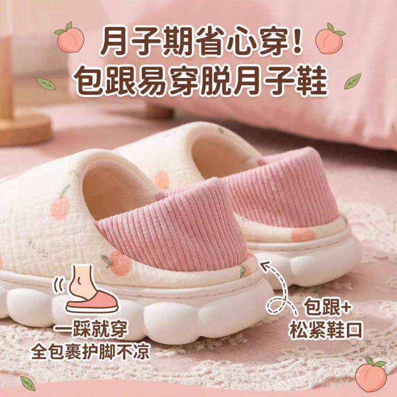 产妇月子鞋女士2026新款家居孕妇包跟软底防滑厚底保暖棉拖鞋外穿