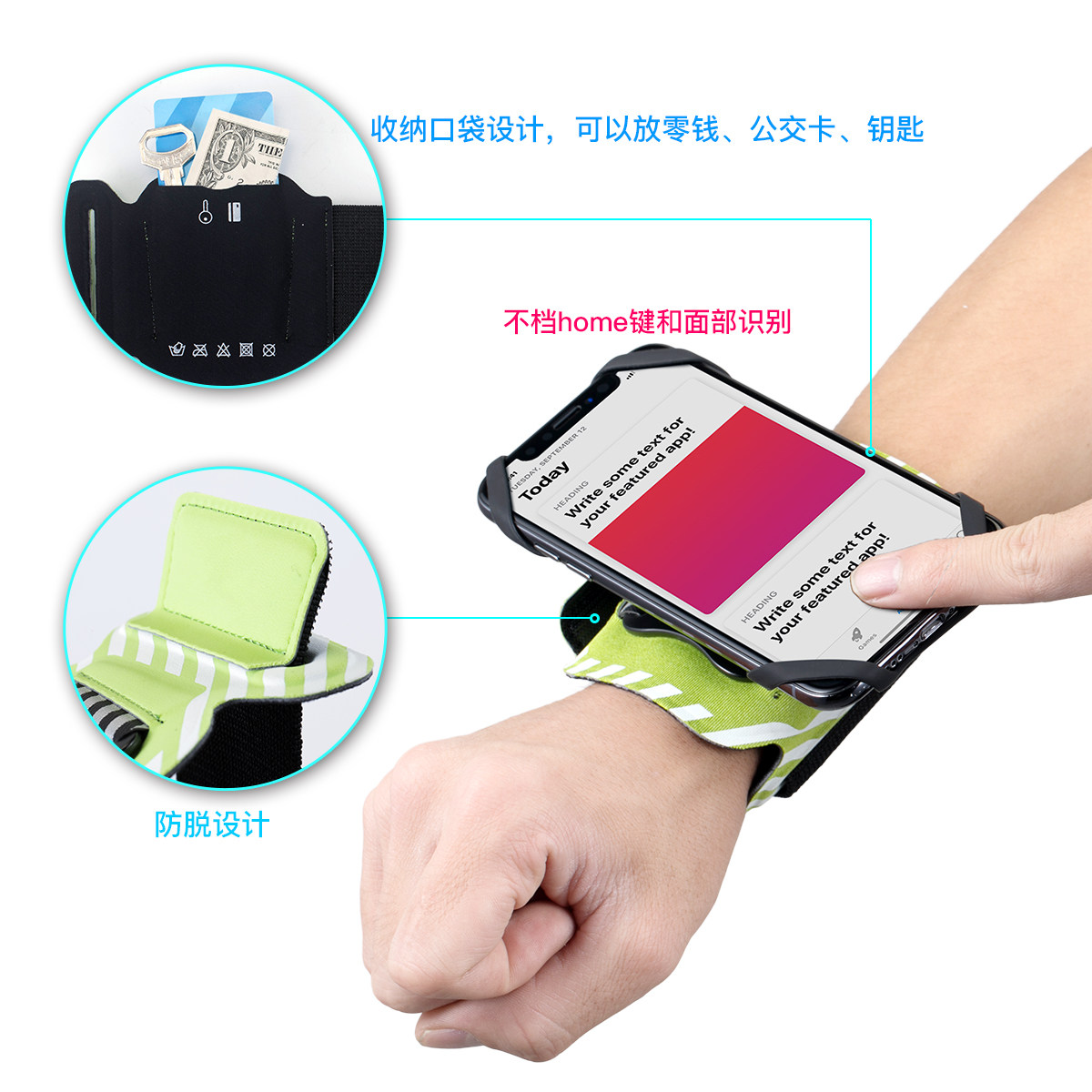 超柔软可拆卸腕带臂带臂包可旋转手机套代驾外卖跑步手机袋手机包