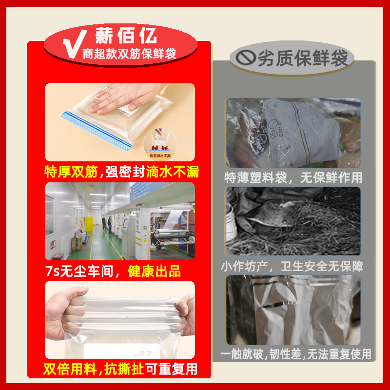 保鲜袋密封袋食品级家用自封塑封冰箱专用加厚保鲜袋带封口分装袋