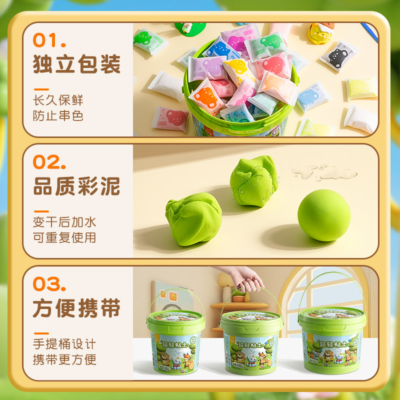 超轻粘土儿童彩泥无毒橡皮泥黏土幼儿园专用益智玩具12色24色36色太空泥小学生黏土手工制作diy材料工具套装