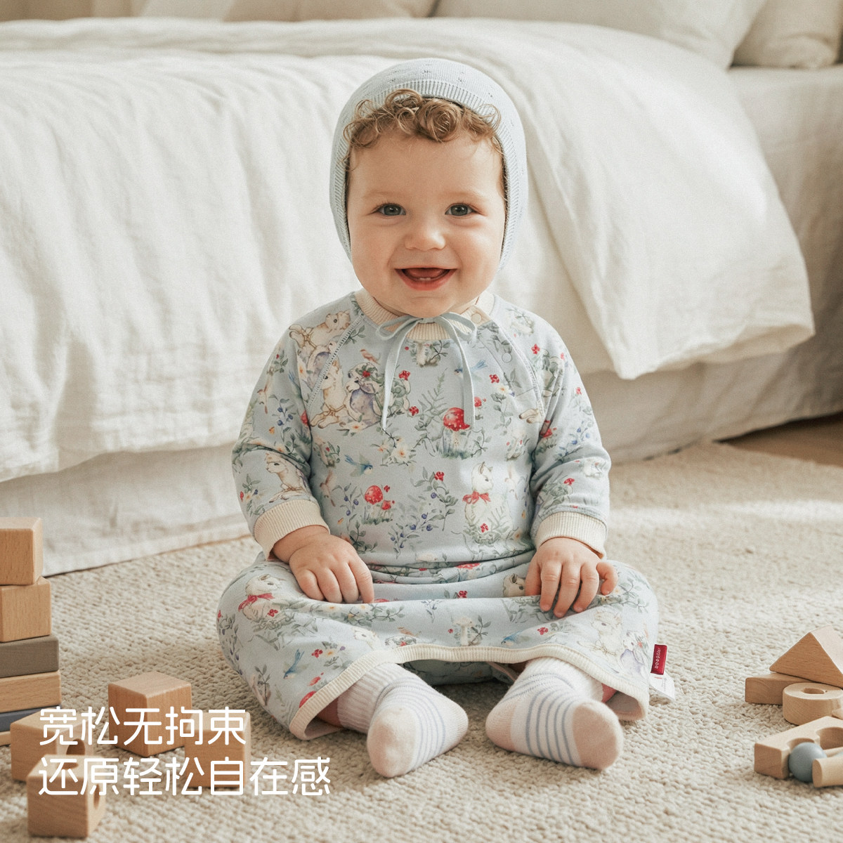 【花开时春晓】aqpa爱帕宝宝儿童春秋新品睡袍婴幼儿长袖睡袍哈衣