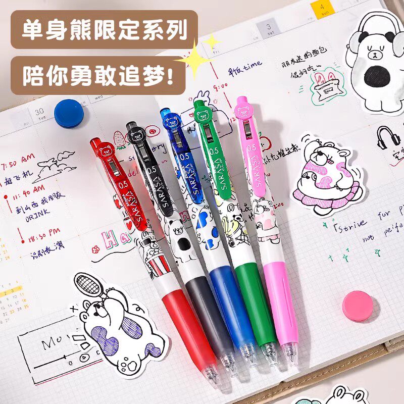 秋冬新品 日本ZEBRA斑马JJ15单身熊限定款中性笔音乐运动熊宝0.5按动水笔学生用考试刷题黑笔手账彩色签字笔