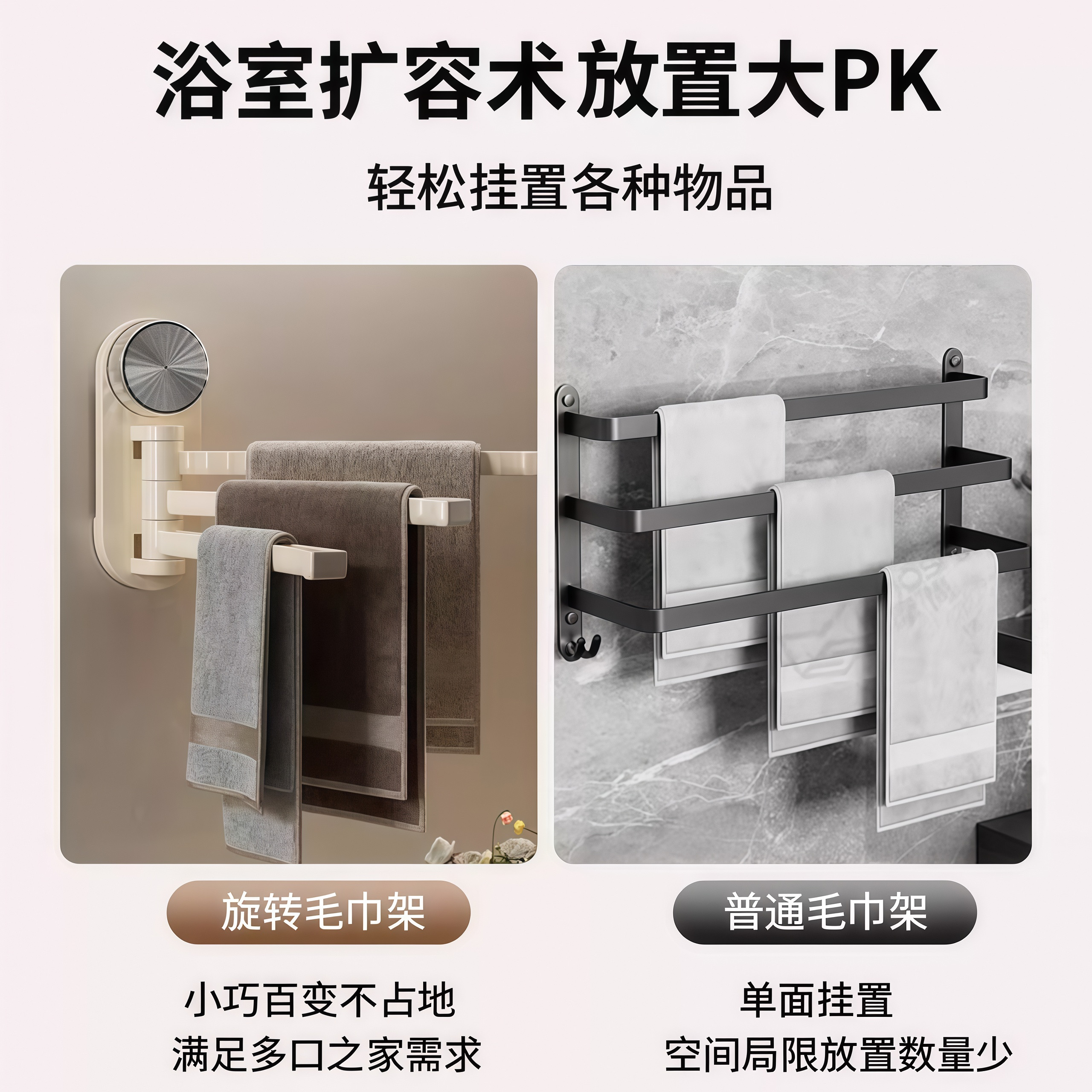 浴室不锈钢伸缩旋转吸盘毛巾架防水防锈多功能家用免打孔置物架