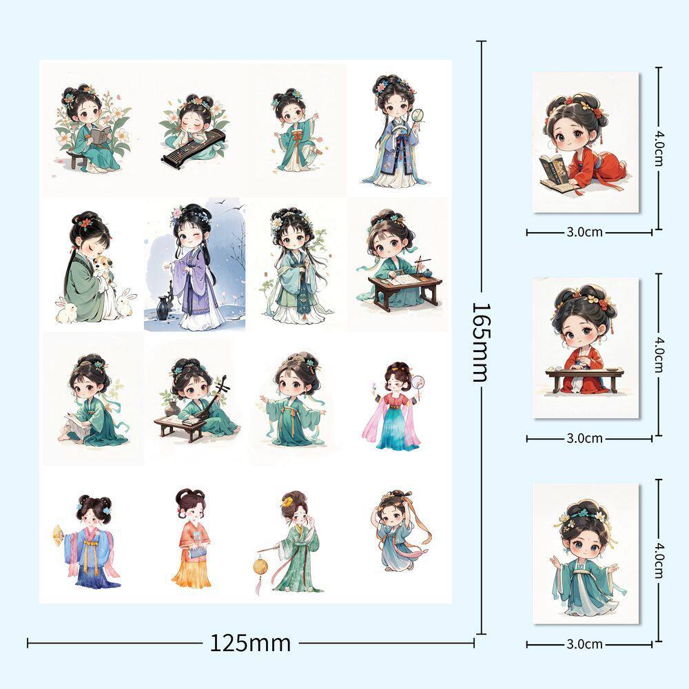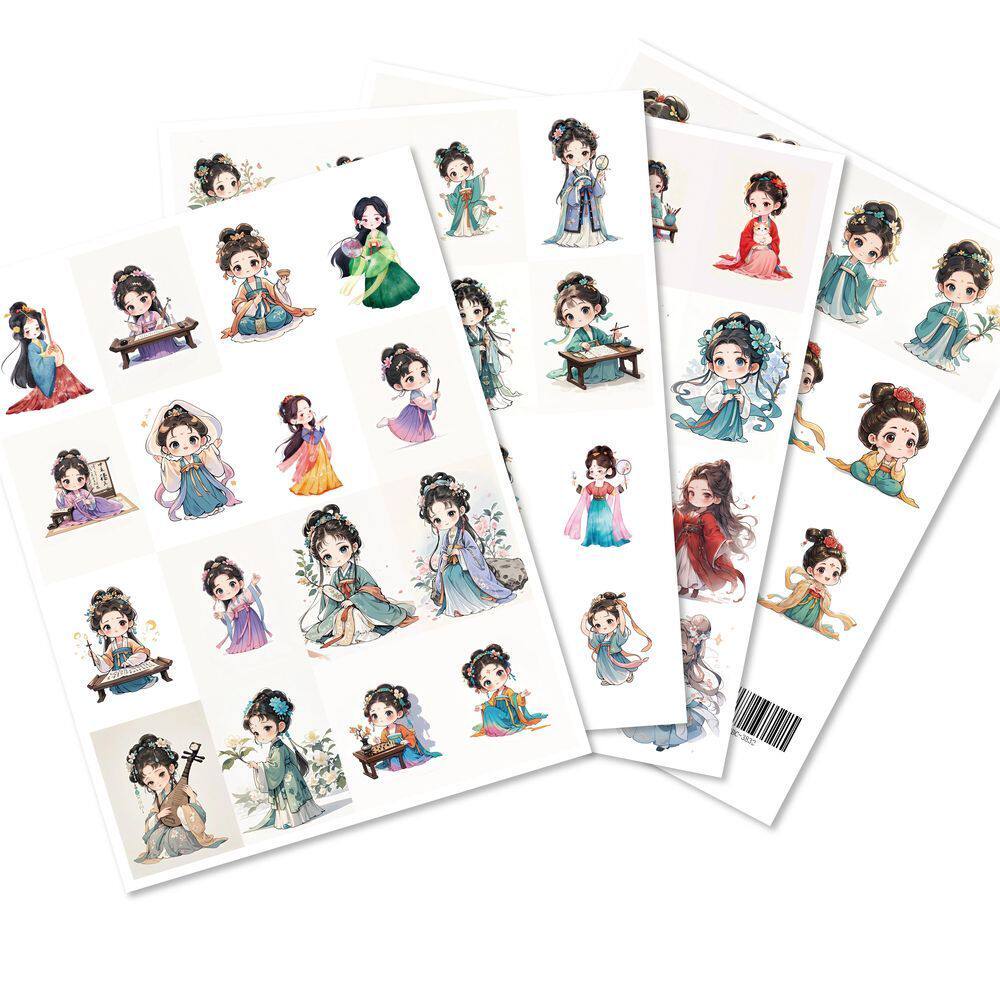 古装可爱女孩贴纸卡通Q版唐装汉服周边插画贴图diy电脑笔记本装饰