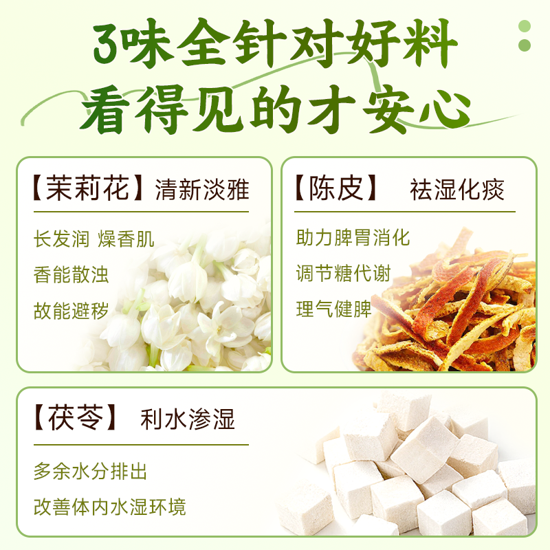 茉莉花茯苓陈皮茶正品官方旗舰店中药材排浊茶包三清茶湿气脾胃
