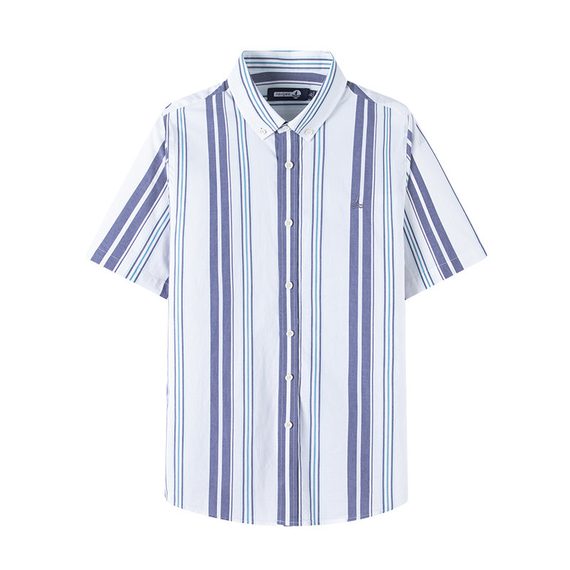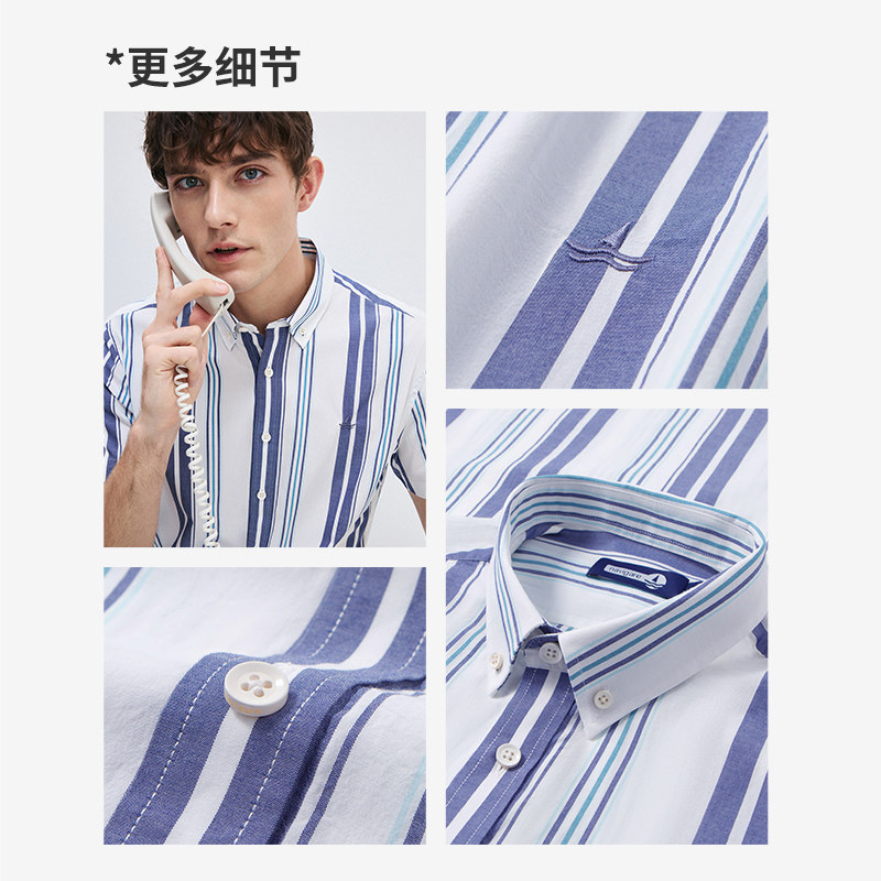 [雪棉]Navigare意大利小帆船蓝色短袖衬衫男夏季休闲条纹衬衣