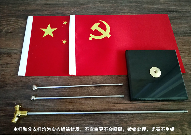 本款桌旗,底座采用天然大理石,主杆和分支小杆子均为镀铬实心钢筋杆,有分量,真材实料; 默认发Y字型国旗党旗款式,需要T字型款式或者外国旗帜请备注,或者联系客服,有需要定制旗的亲 请给我们发旗帜图案源文件即可 去领券购买 ->