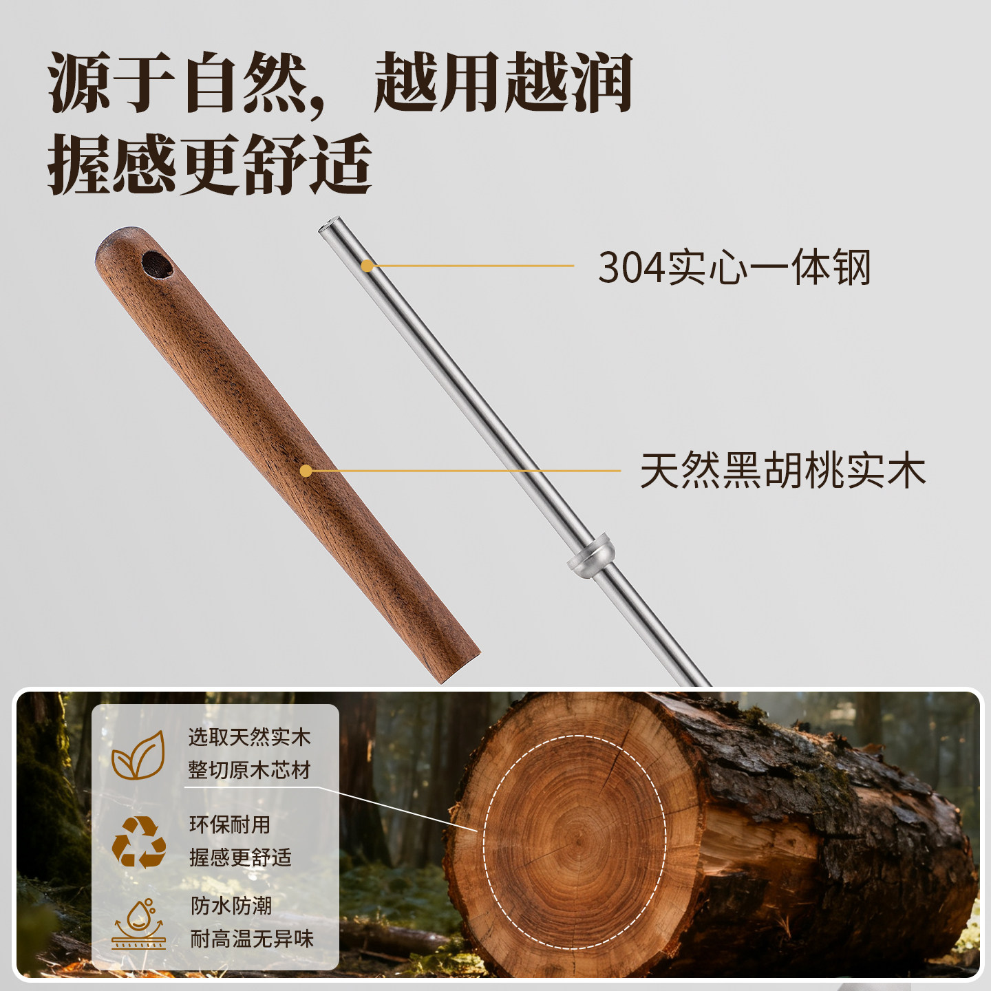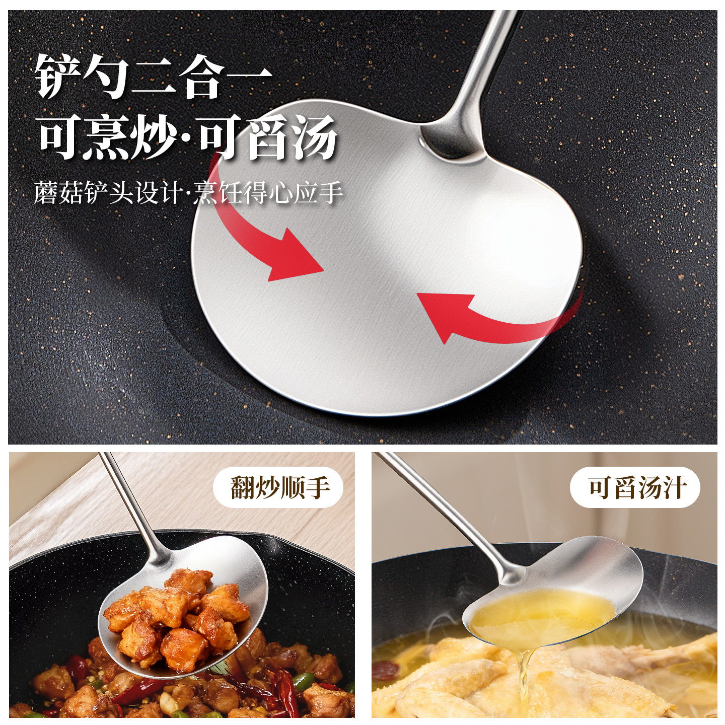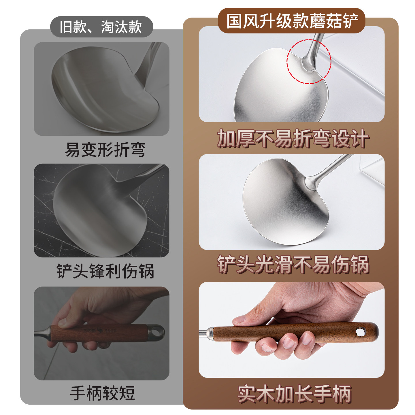 304不锈钢锅铲家用蘑菇铲铁锅专用炒菜铲子小号炒勺胡桃木柄套装