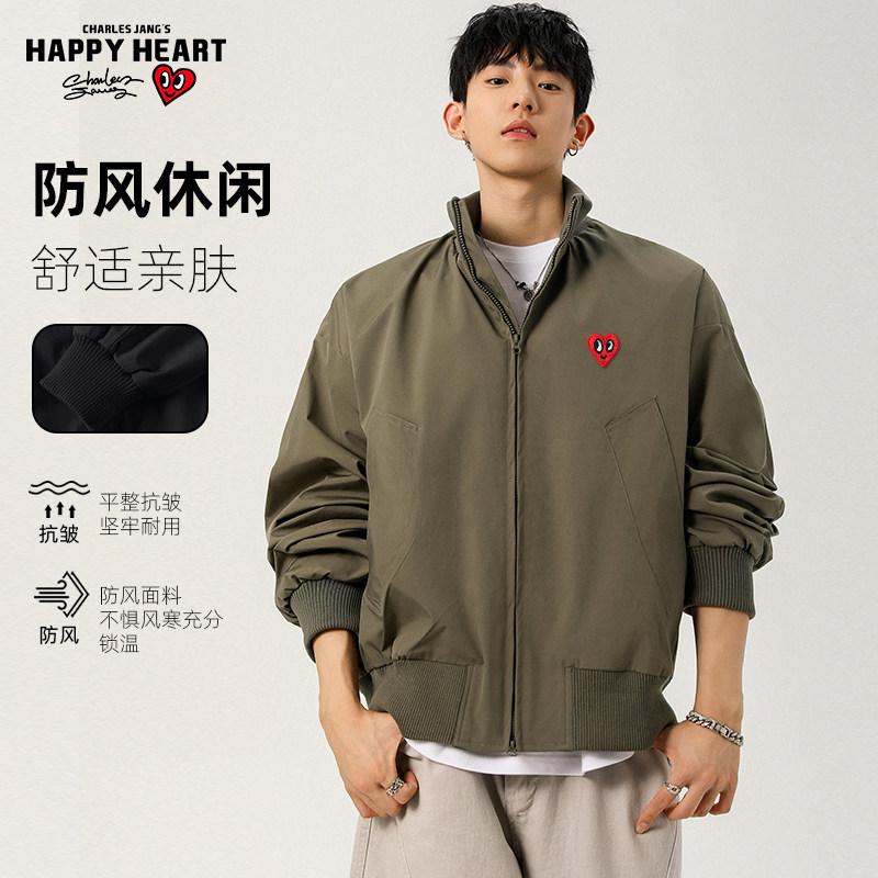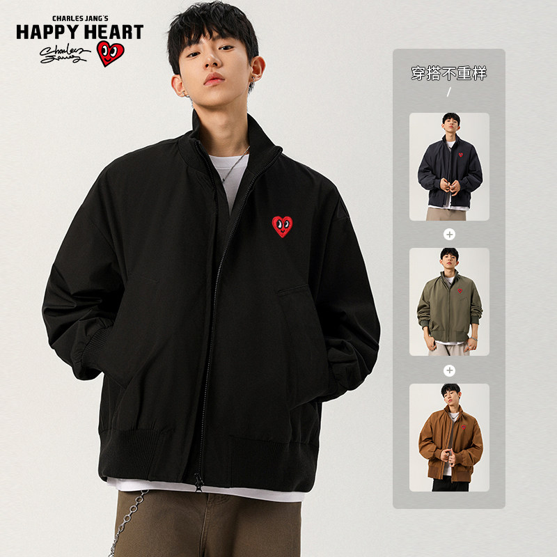 查尔斯桃心美式立领痞帅短款夹克男女春秋飞行员棒球服廓形外套