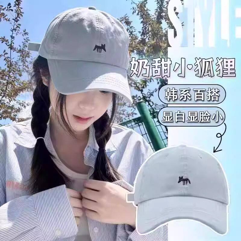 可爱百搭小狐狸刺绣棒球帽男女同款韩版运动鸭舌帽显脸小粉色韩系