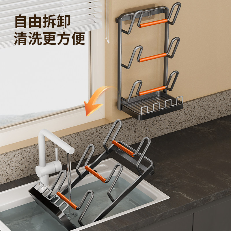 吸盘厨房抹布架置物架洗碗槽窗台多杆可旋转沥水架壁挂上墙毛巾架