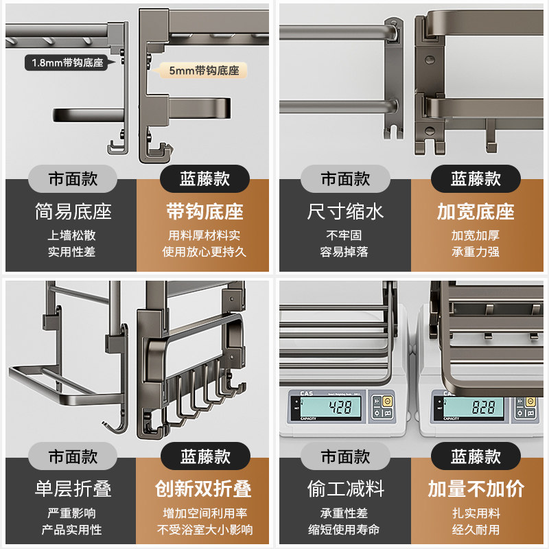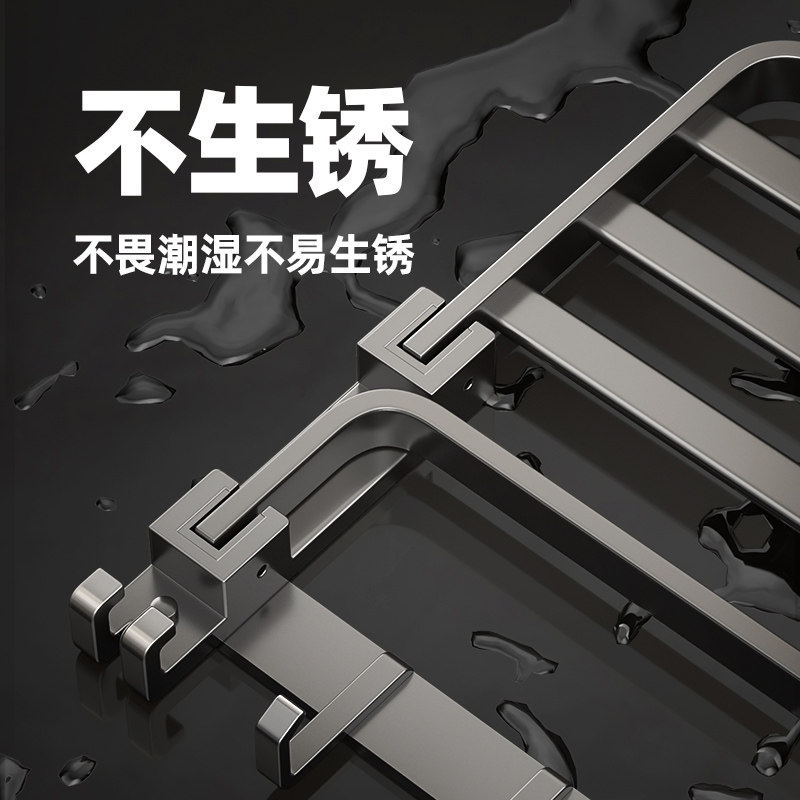 枪灰折叠浴巾架浴室置物架卫生间免打孔洗手间一体收纳挂架套装
