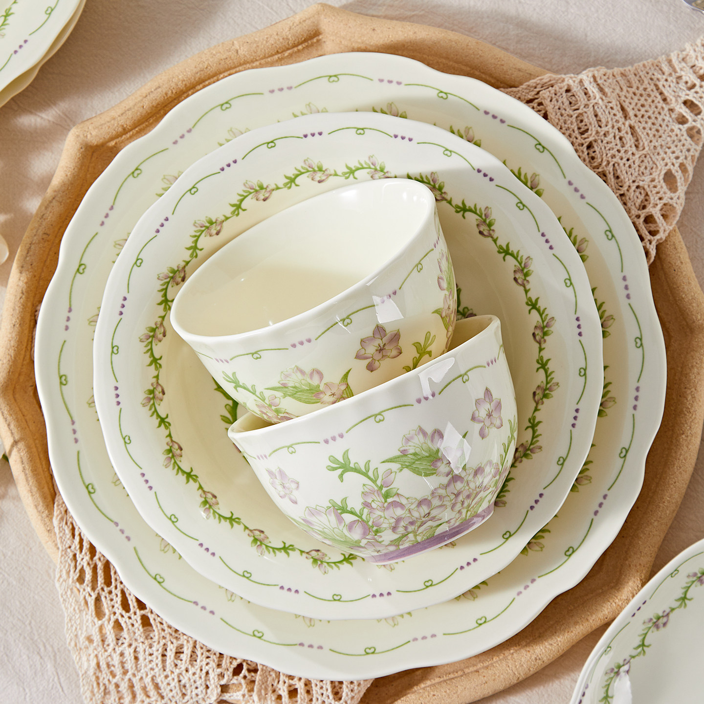 奶油风陶瓷碗家用卡通菜盘子可爱米饭碗汤碗釉下彩儿童餐具耐高温