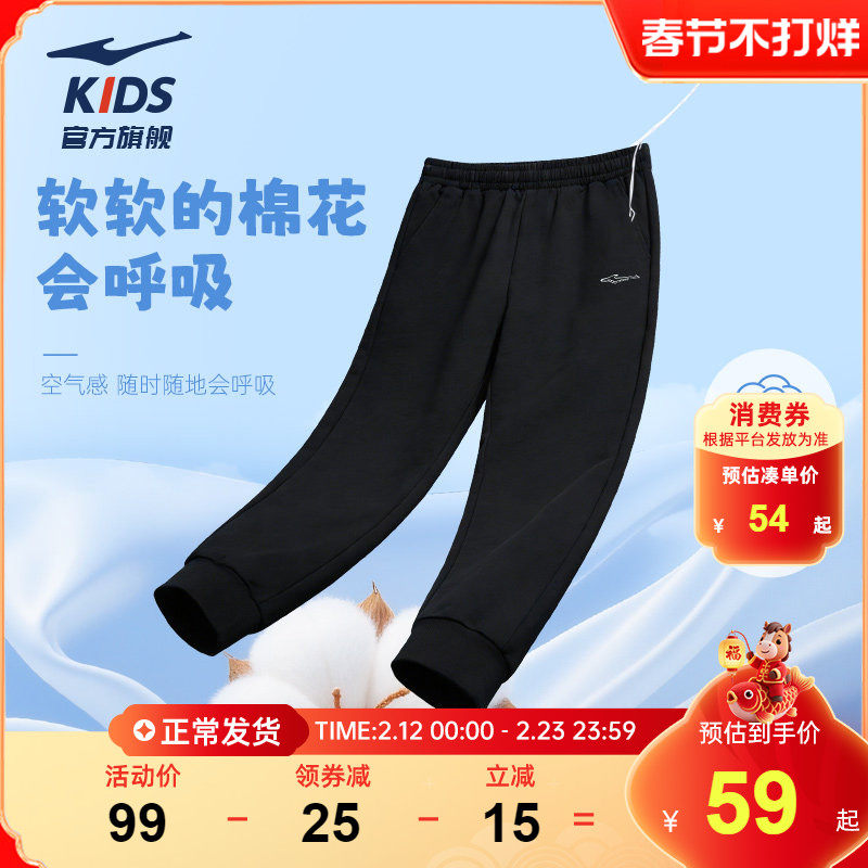 鸿星尔克童装运动裤男童长裤春季新款中大童裤子秋冬纯棉女童卫裤