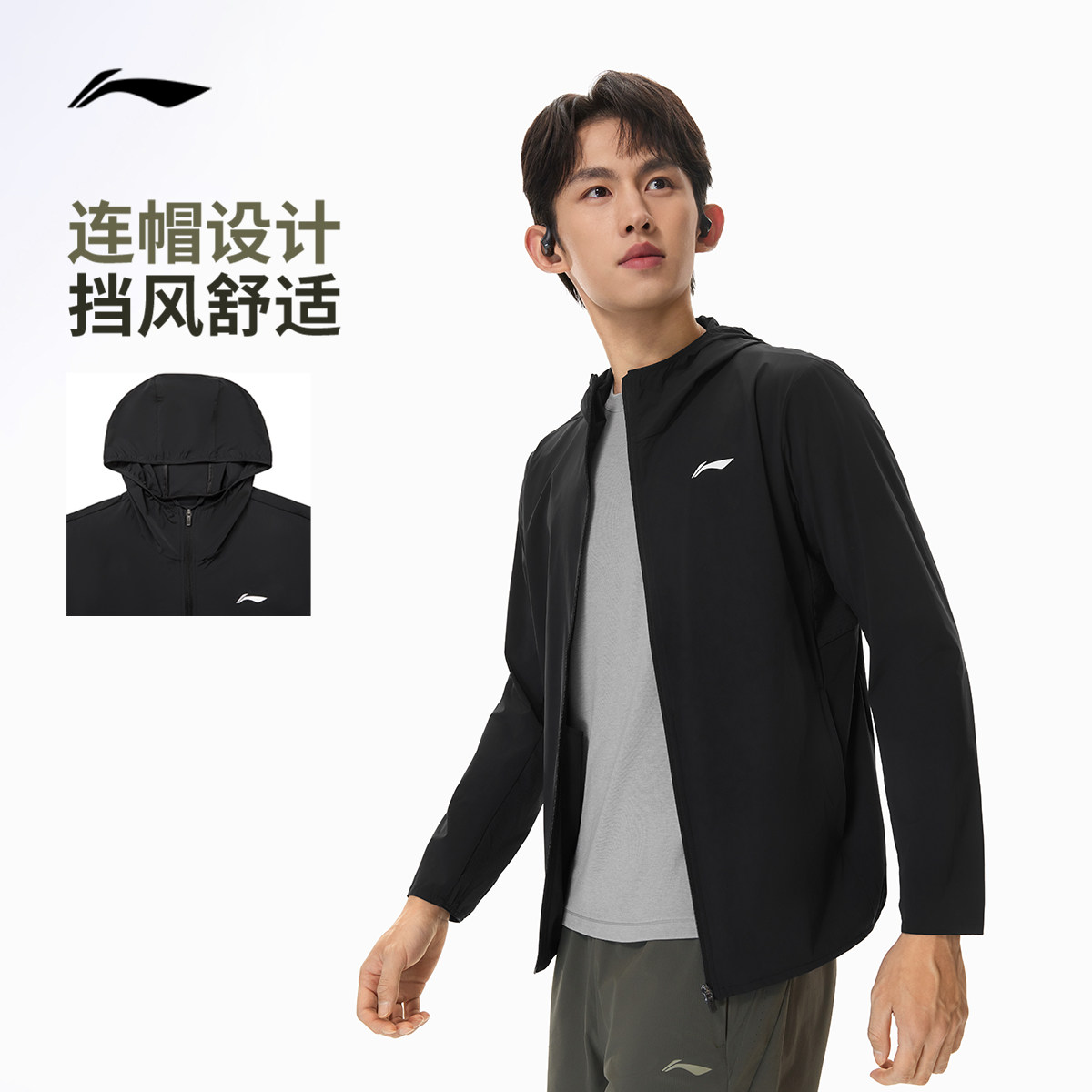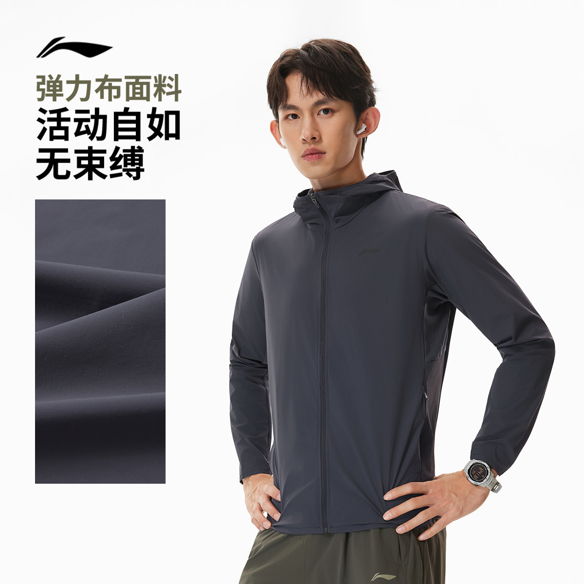 李宁防晒衣男2026春夏新品跑步健身皮肤衣开衫长袖冰丝运动外套