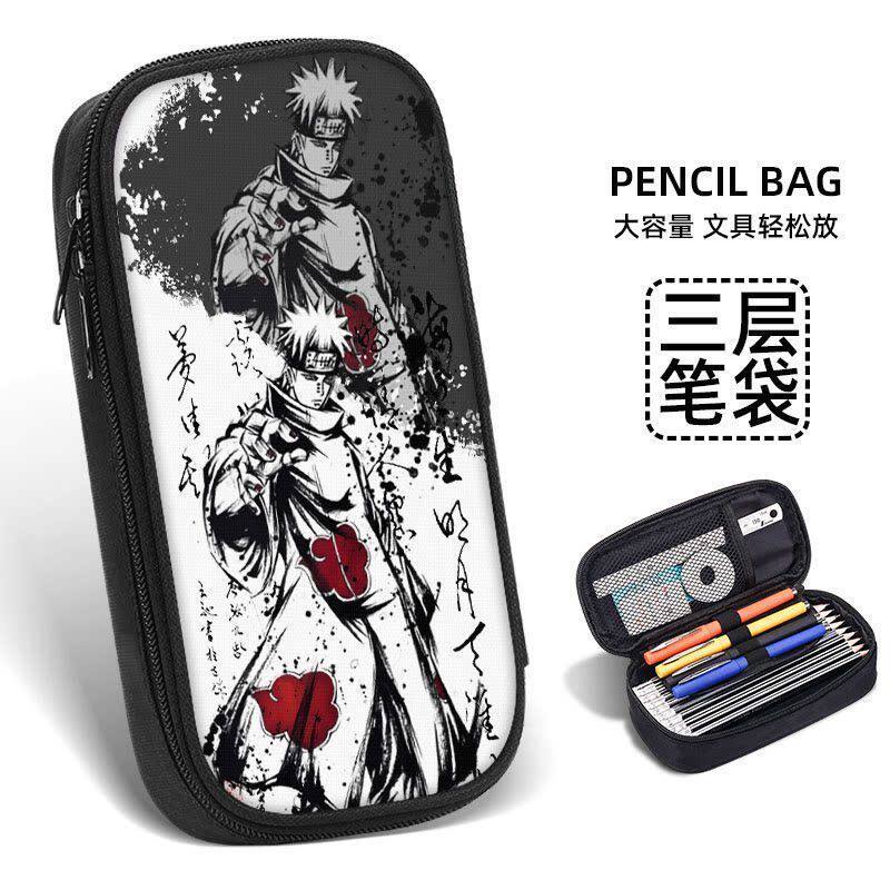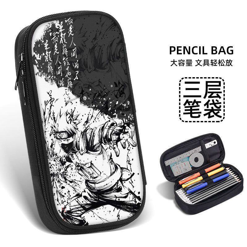 火影忍者笔袋文具盒男孩初中小学生大容量铅笔盒拉链款帆布文具袋