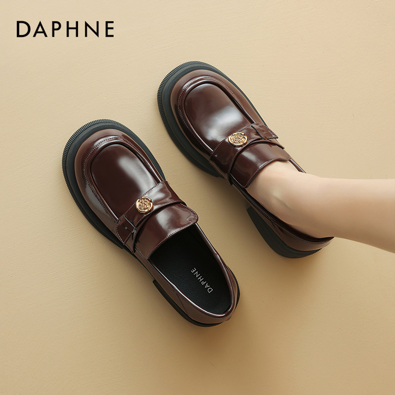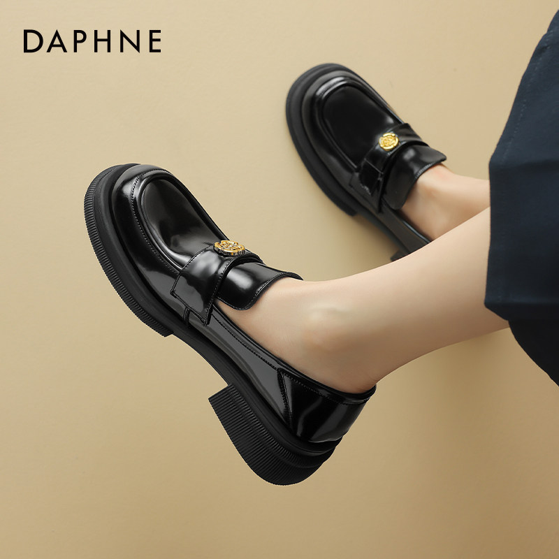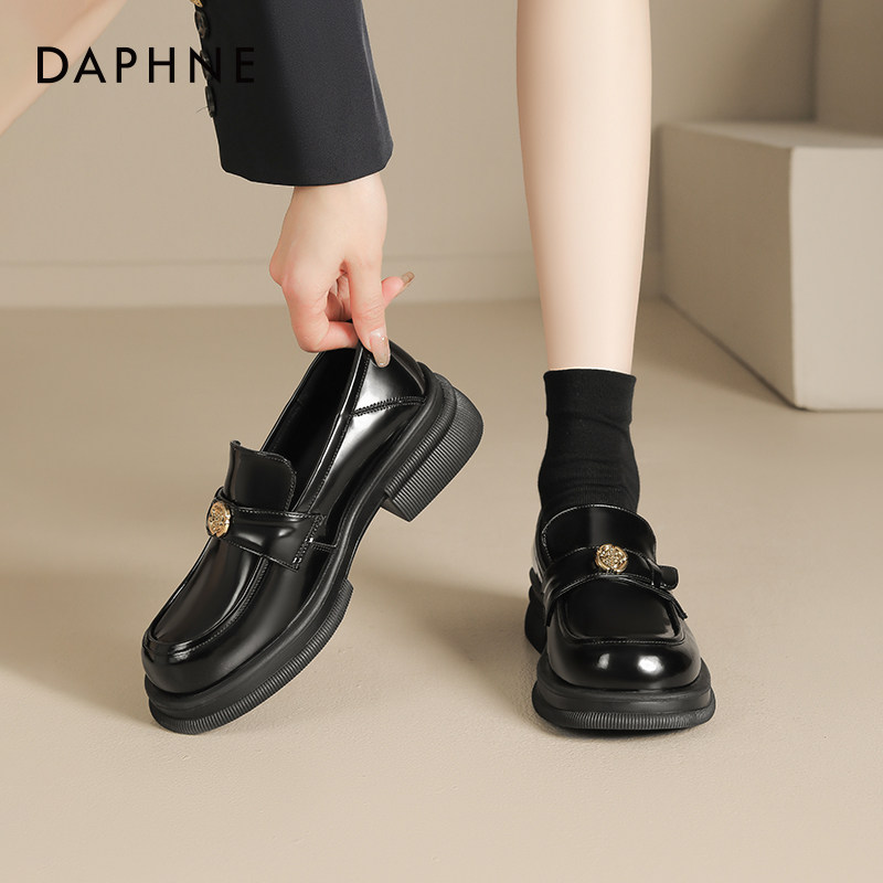 达芙妮山茶花乐福鞋女春季2026新款黑色英伦风小皮鞋通勤百搭单鞋