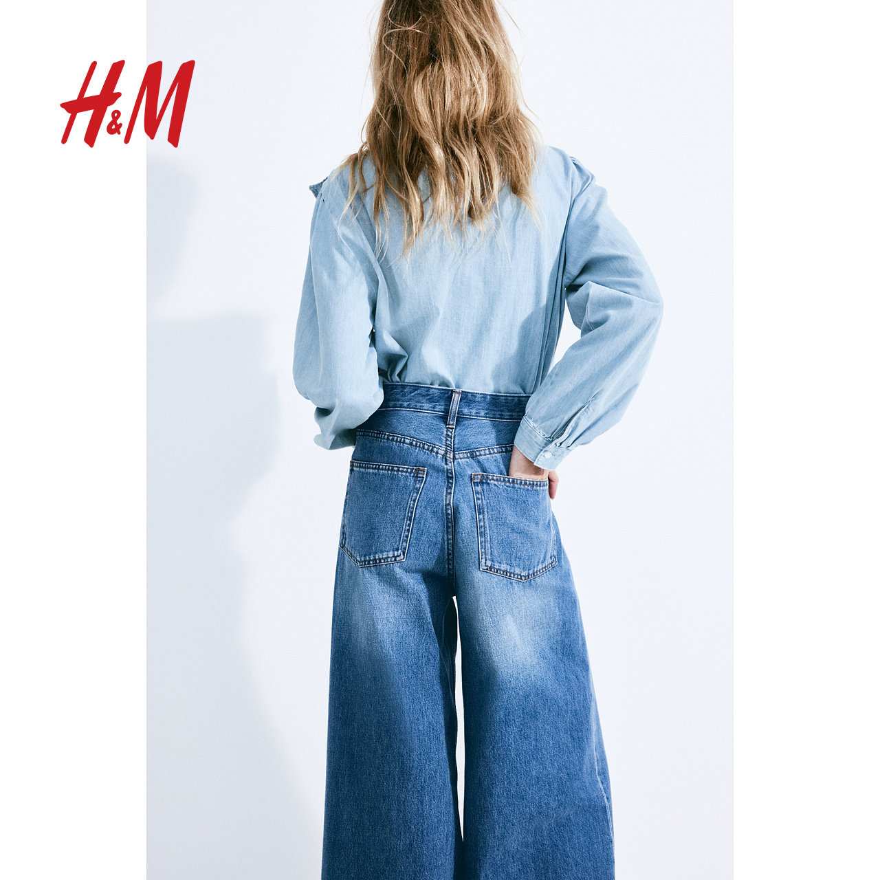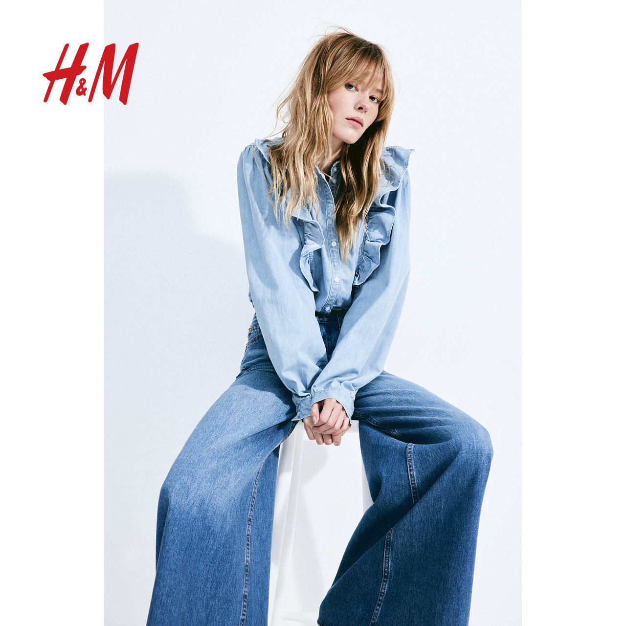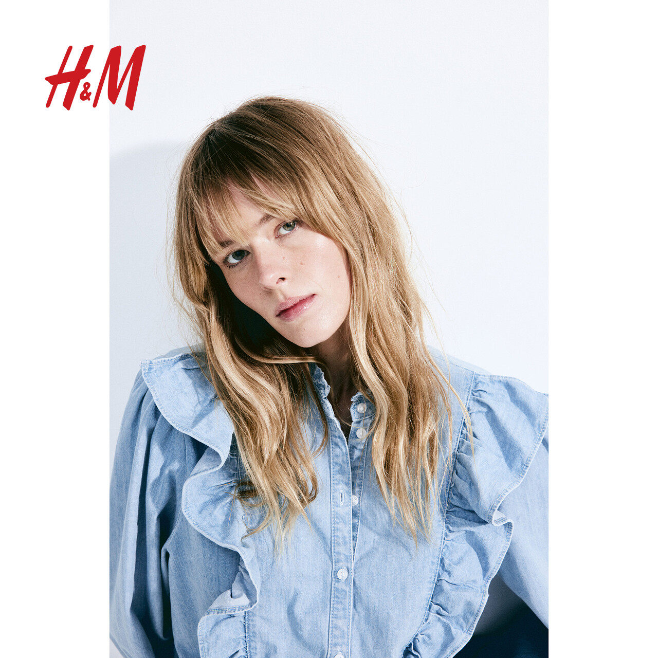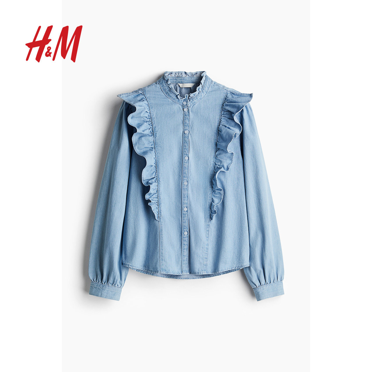 HM女装衬衫2025冬季新款时尚休闲褶边宽松版柔软棉质上衣1262585