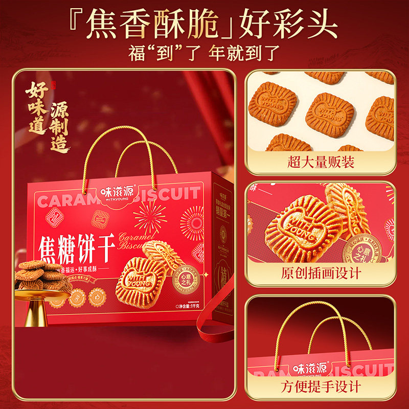 味滋源焦糖饼干礼盒装营养早餐饼干比利时风味解馋零食小吃年货节