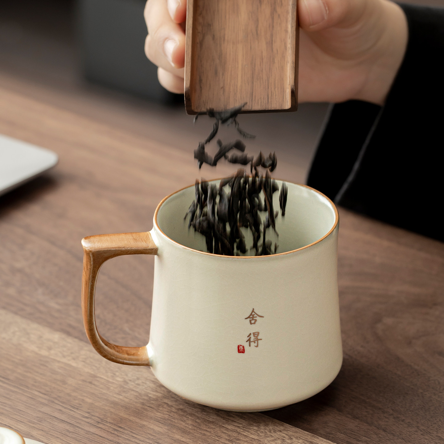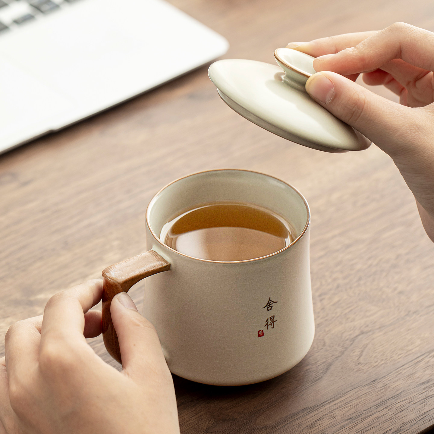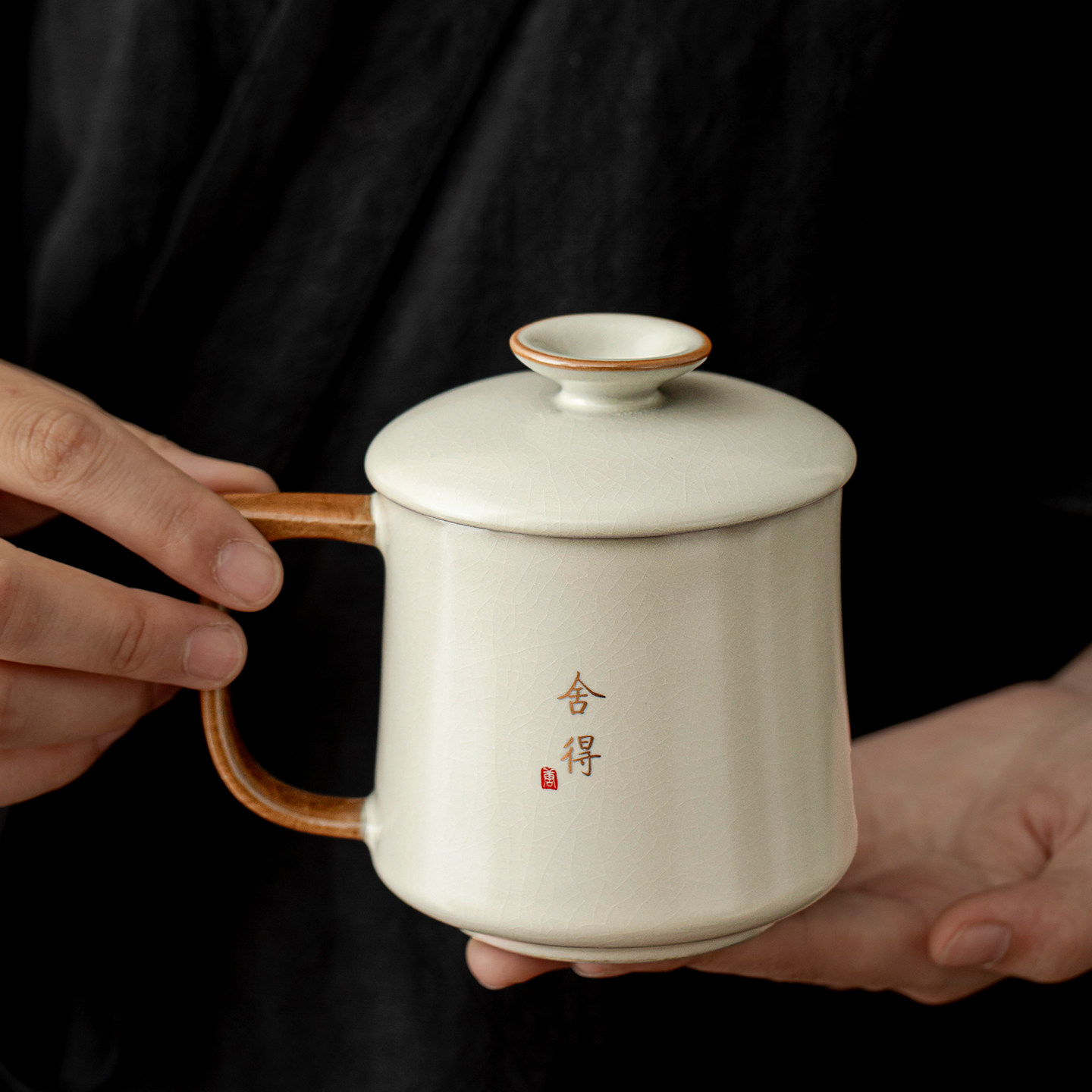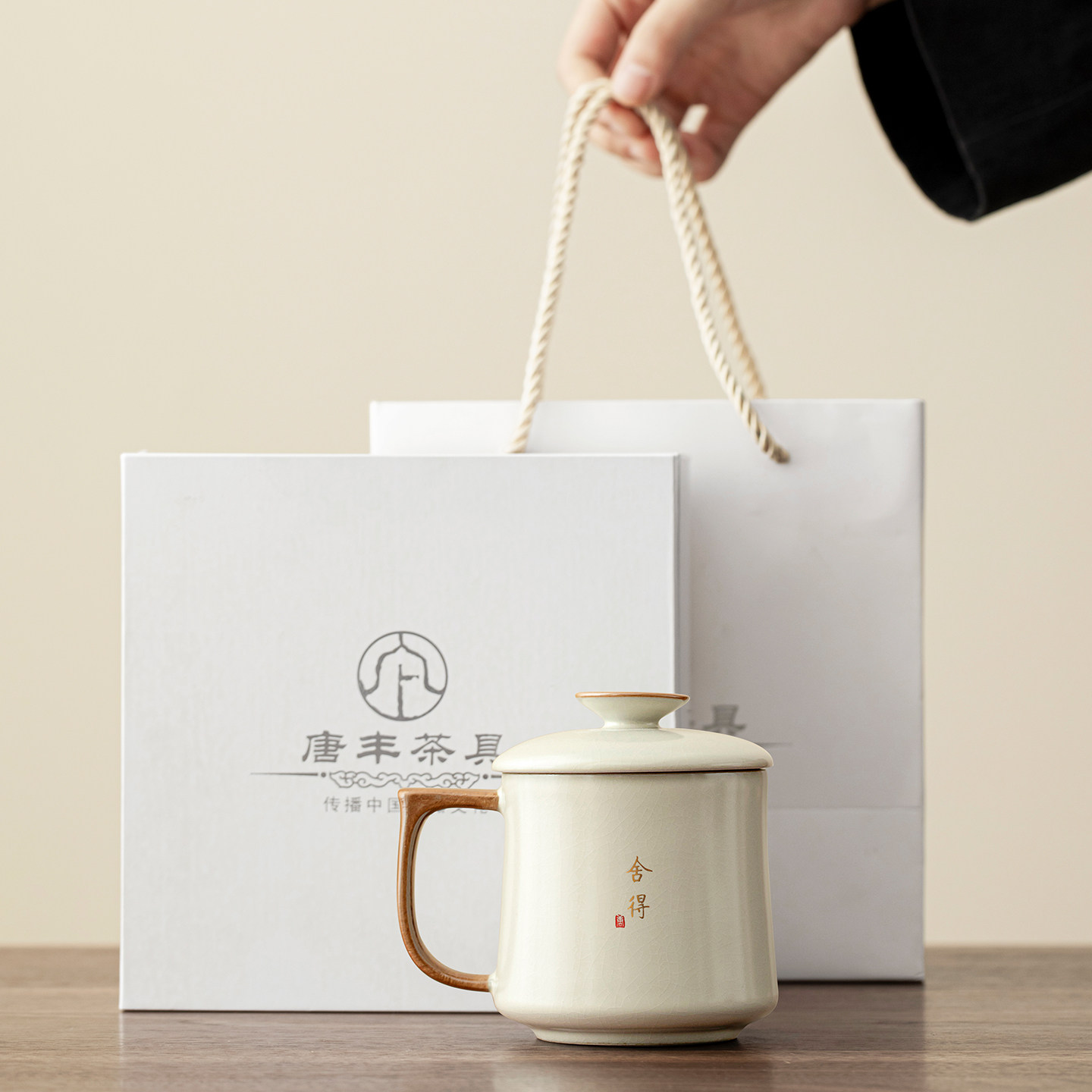 唐丰汝窑泡茶杯家用陶瓷办公室马克杯个人专用喝茶杯子带盖水杯
