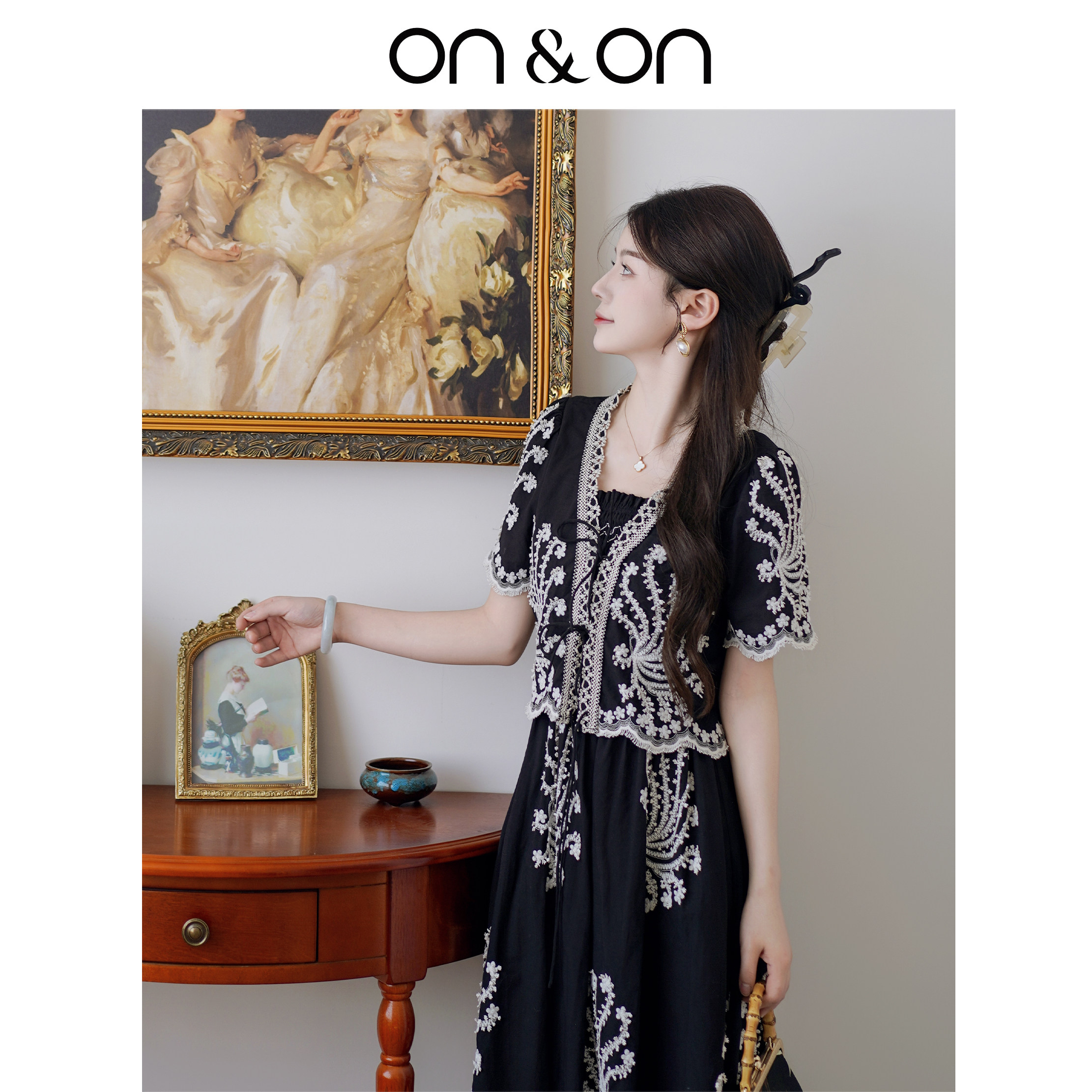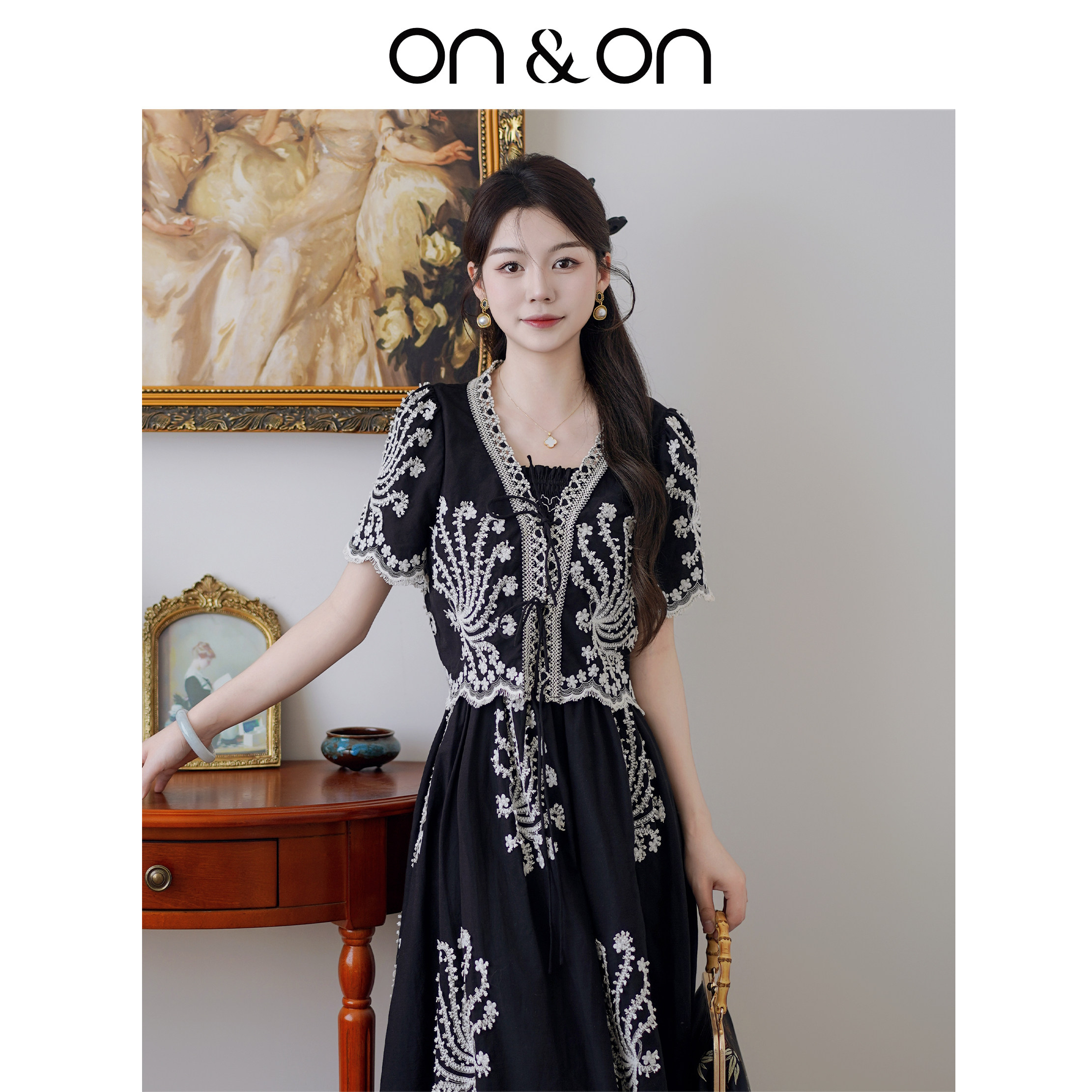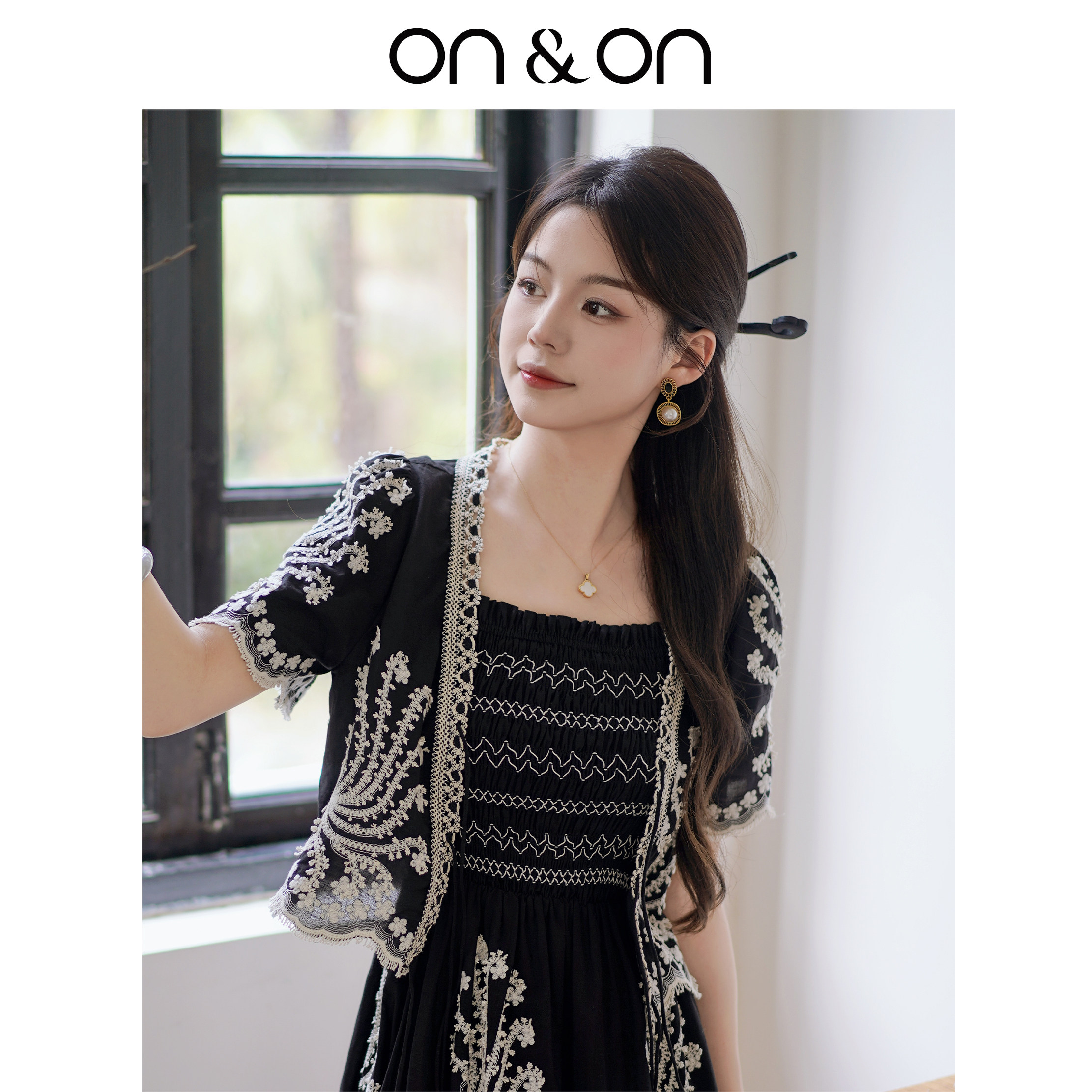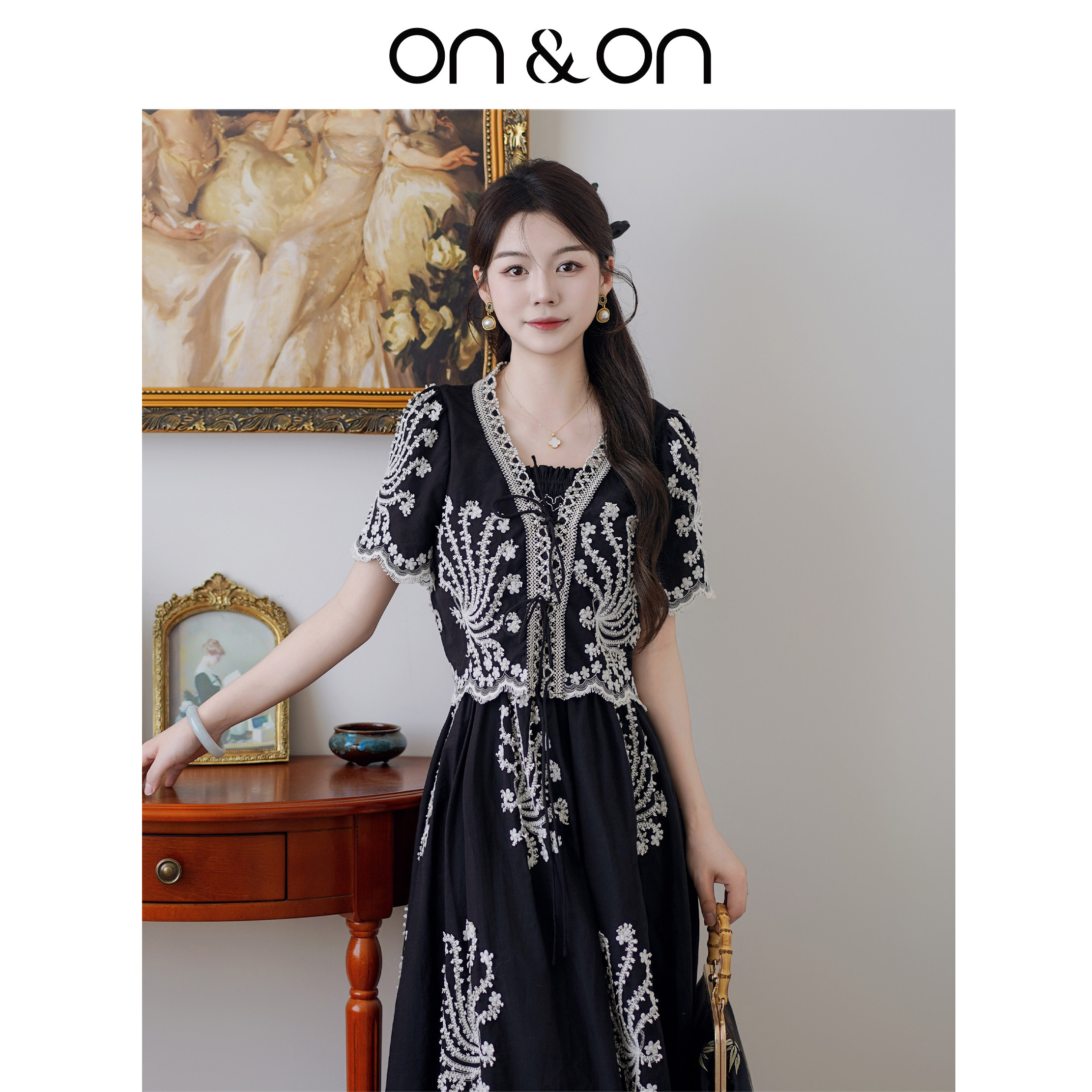 ON&ON/安乃安夏季新款立体绣花设计轻奢感吊带裙+蝴蝶结小衫套装
