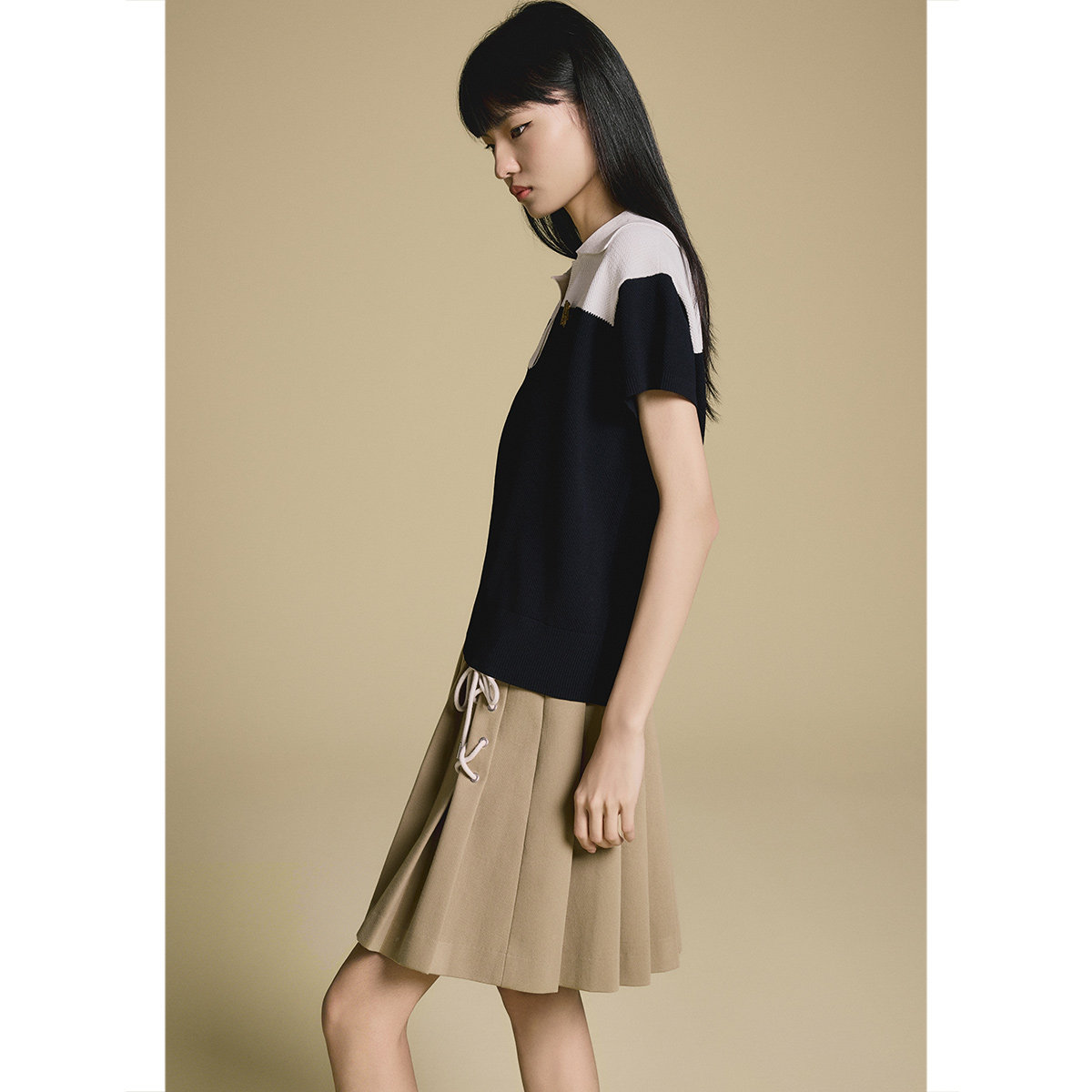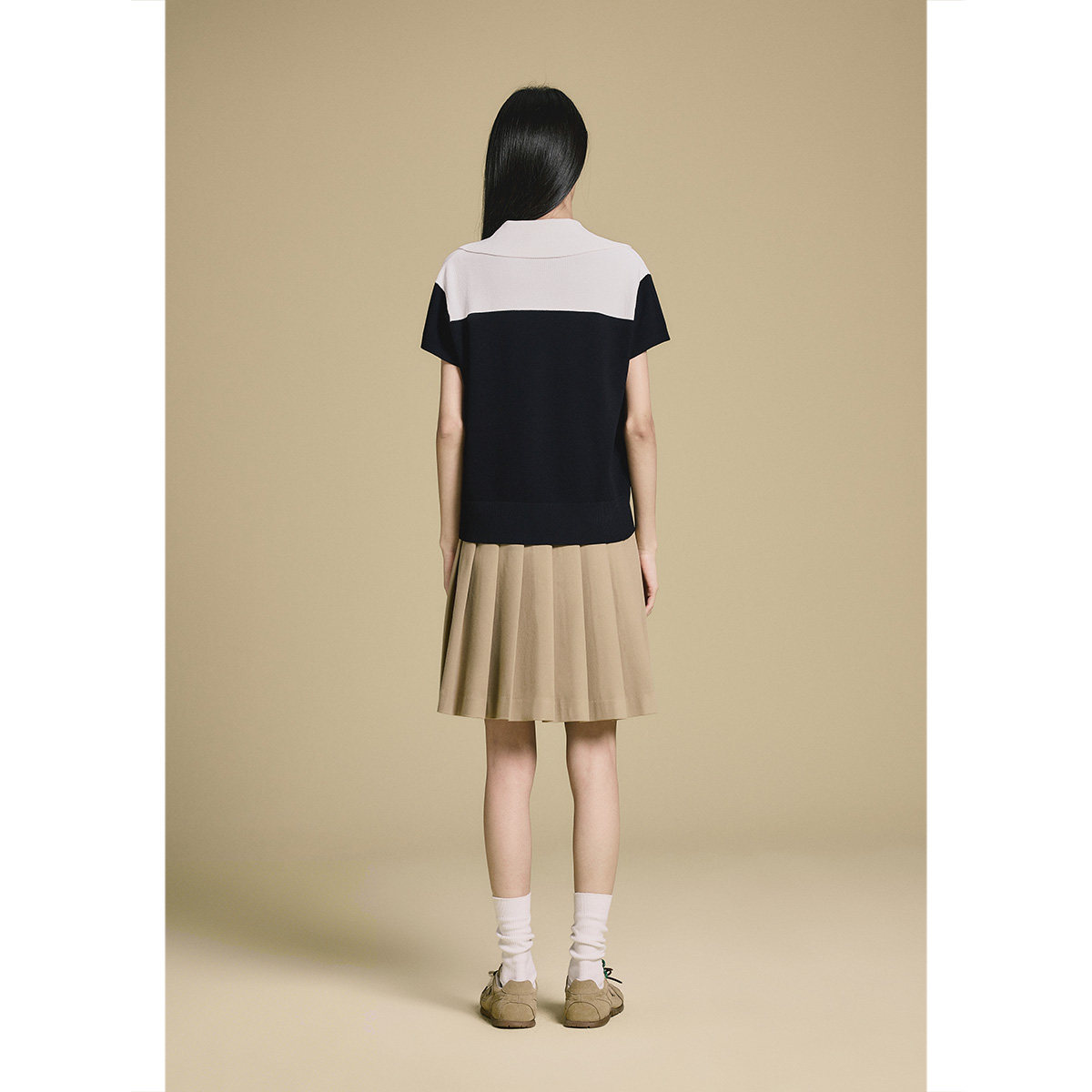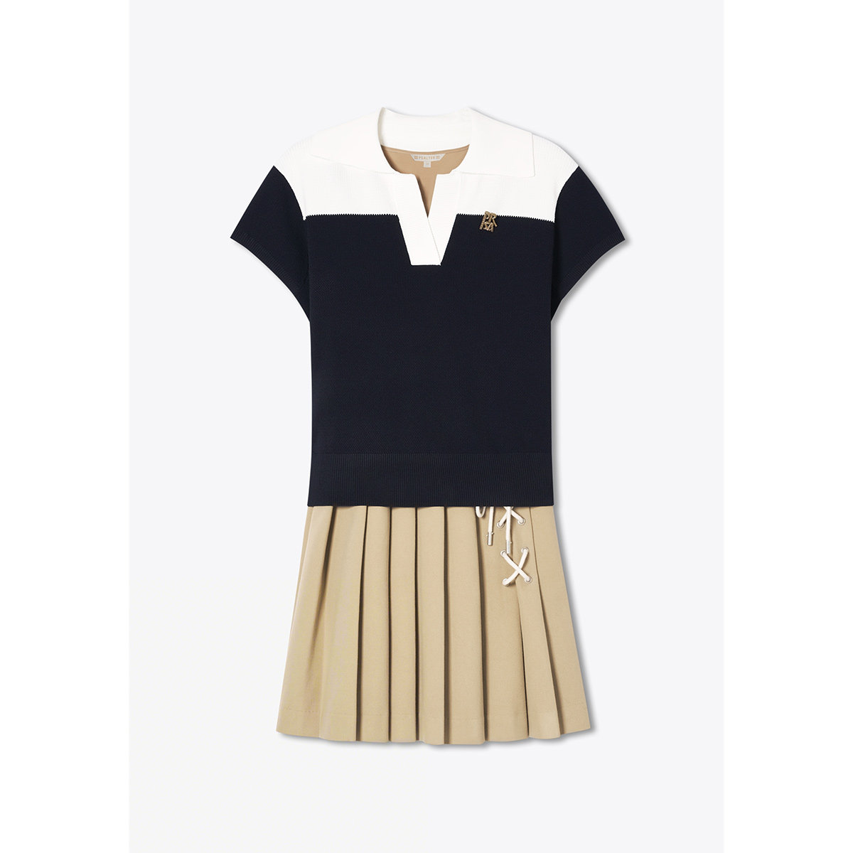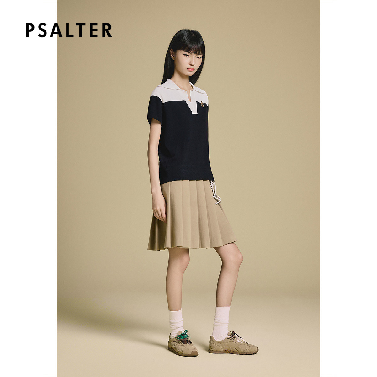 PSALTER诗篇休闲学院风撞色针织百褶连衣裙两件套2025秋款