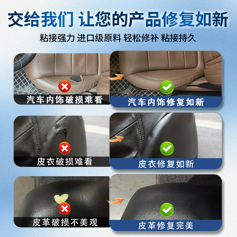 皮革胶水专用强力透明汽车座椅内饰真皮刮伤修复修补防水粘皮包皮衣沙发皮具不伤皮草布料衣服软胶无痕粘合剂