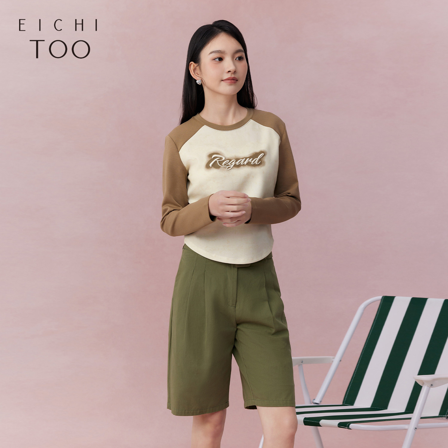 爱居兔春季新款复古时尚修身显瘦长袖T恤