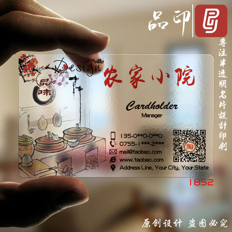 餐饮名片制作订做设计印PVC印刷磨砂透明海鲜馆酒店美食餐饮食品
