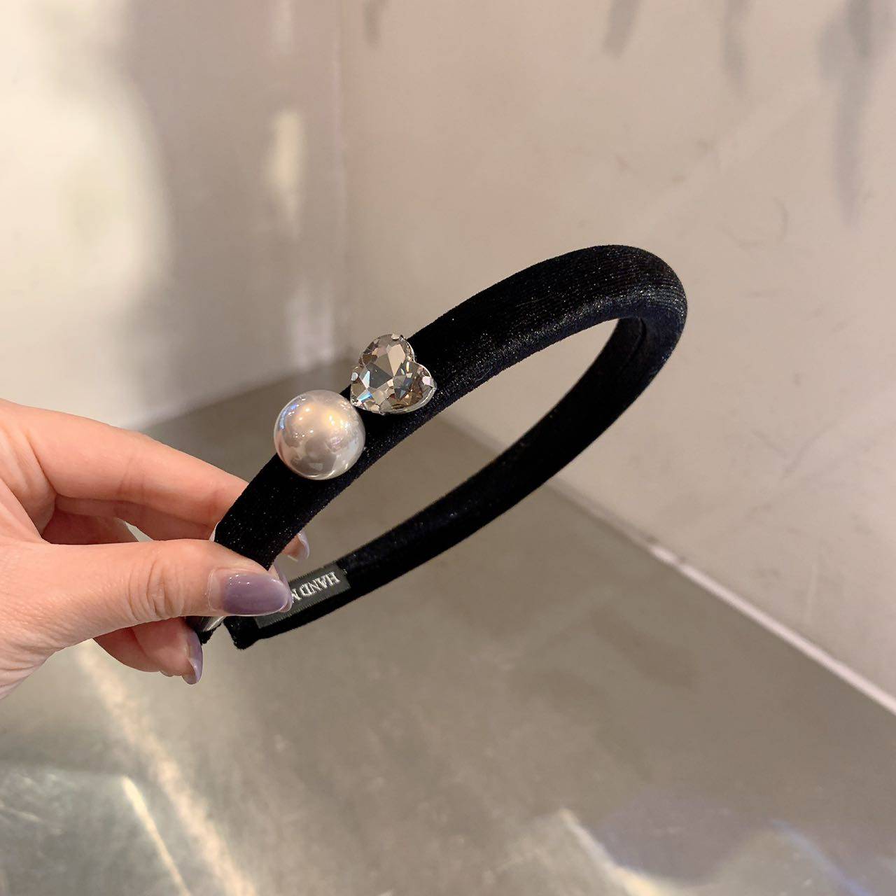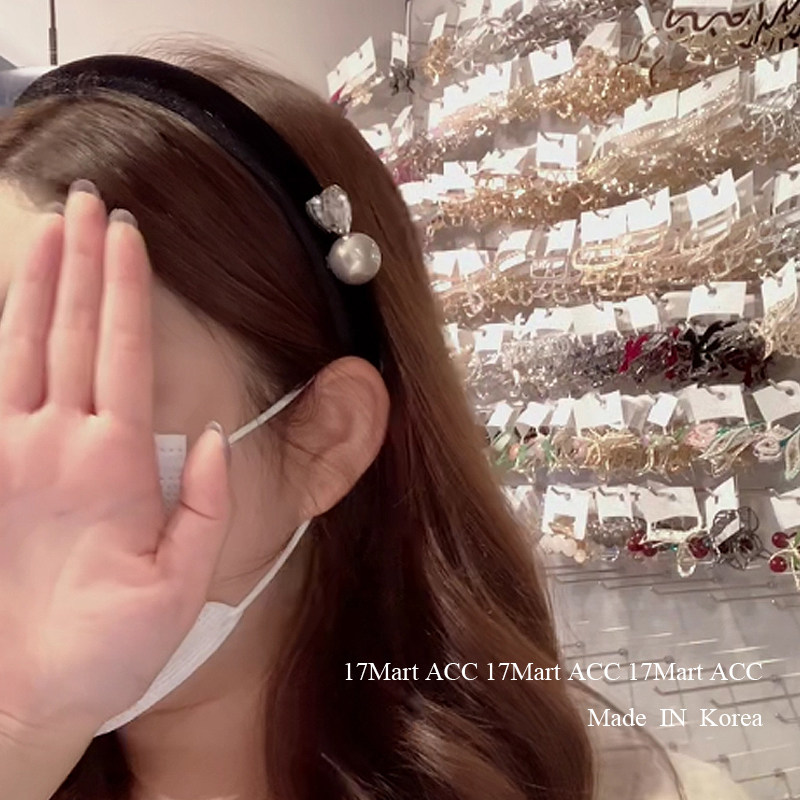 11.9直播韩国baket爱心水钻珍珠丝绒发箍细边窄头箍