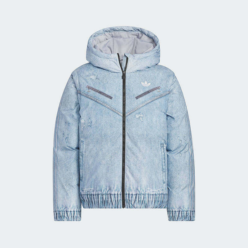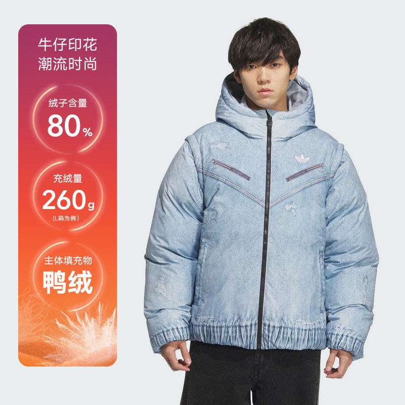 adidas阿迪达斯三叶草冬季牛仔保暖可拆卸连帽男短羽绒服 KC2632